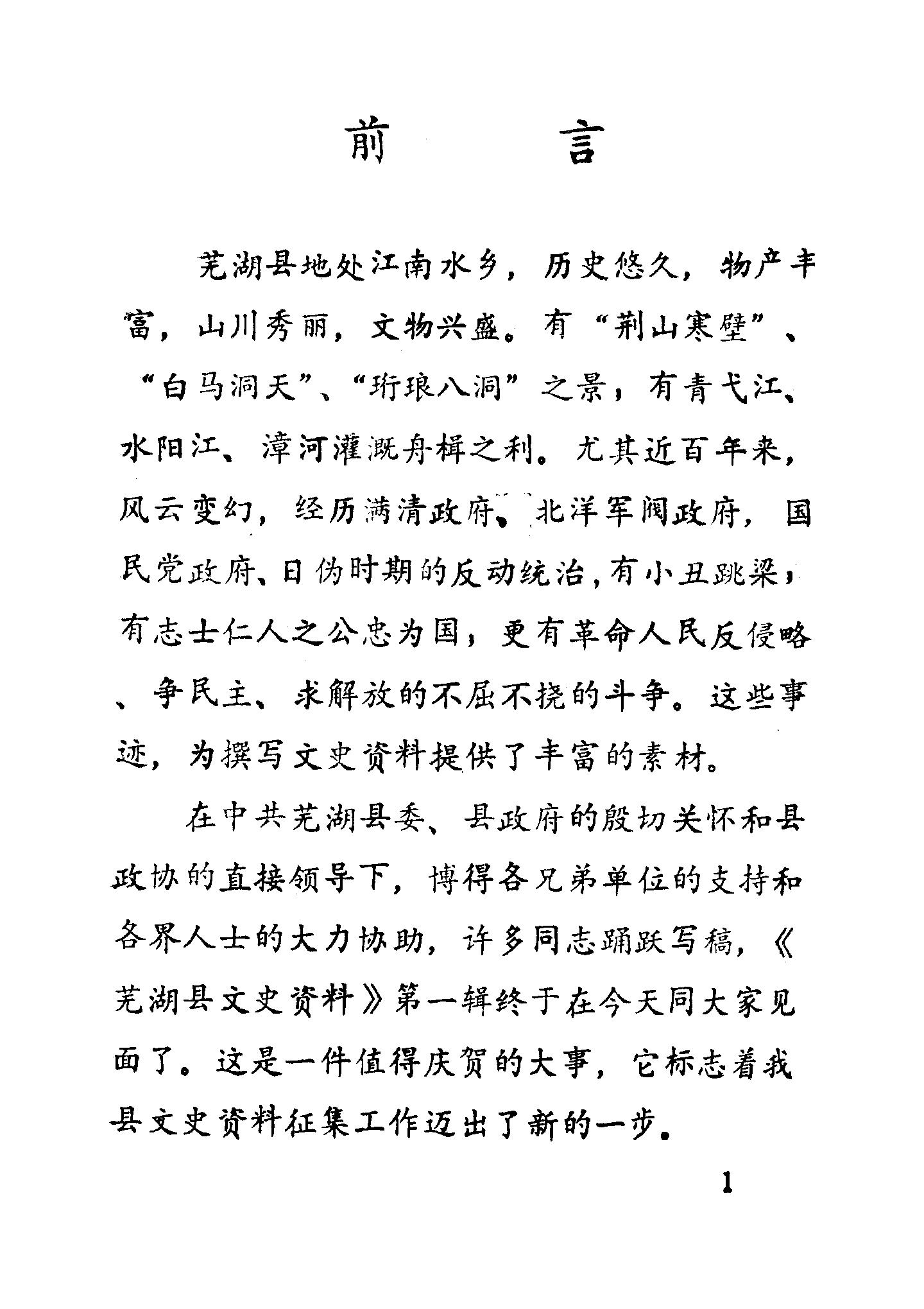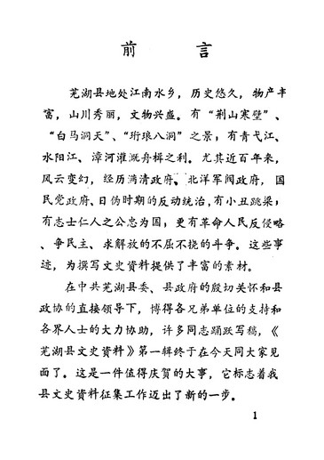 蕪湖縣文史資料第一輯_政協蕪湖縣文史資料研究委員會