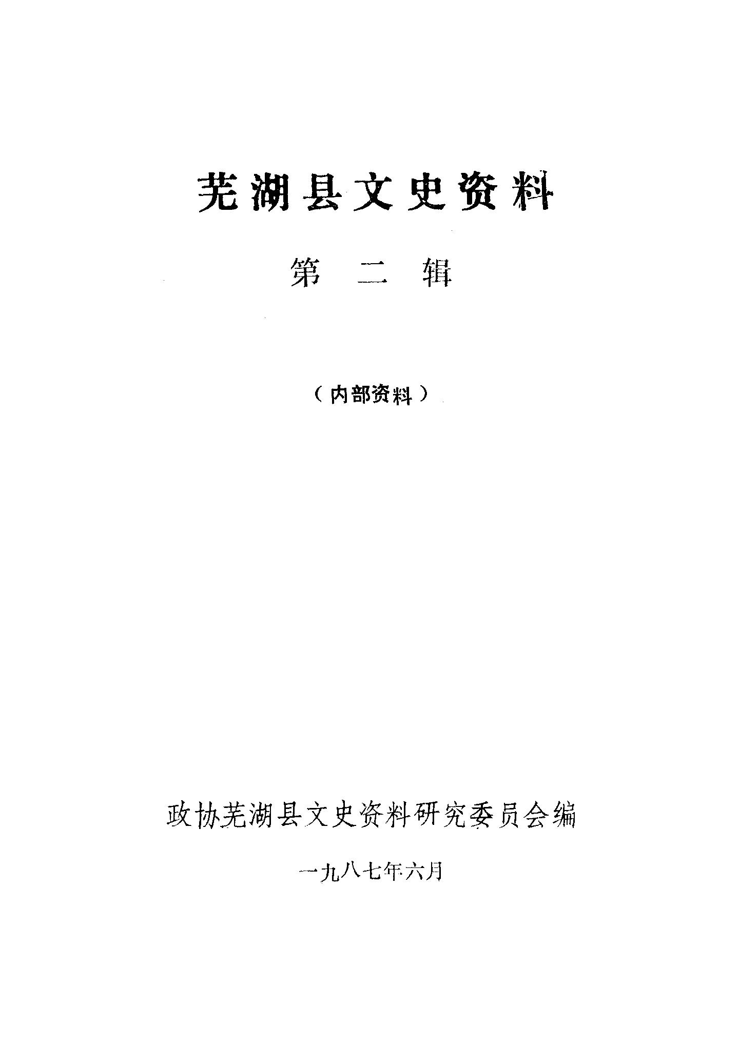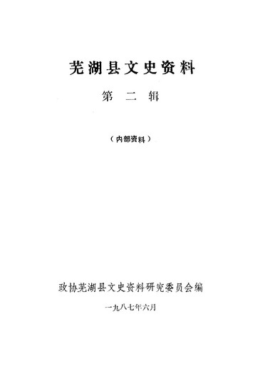 蕪湖縣文史資料第二輯_政協蕪湖縣文史資料研究委員會