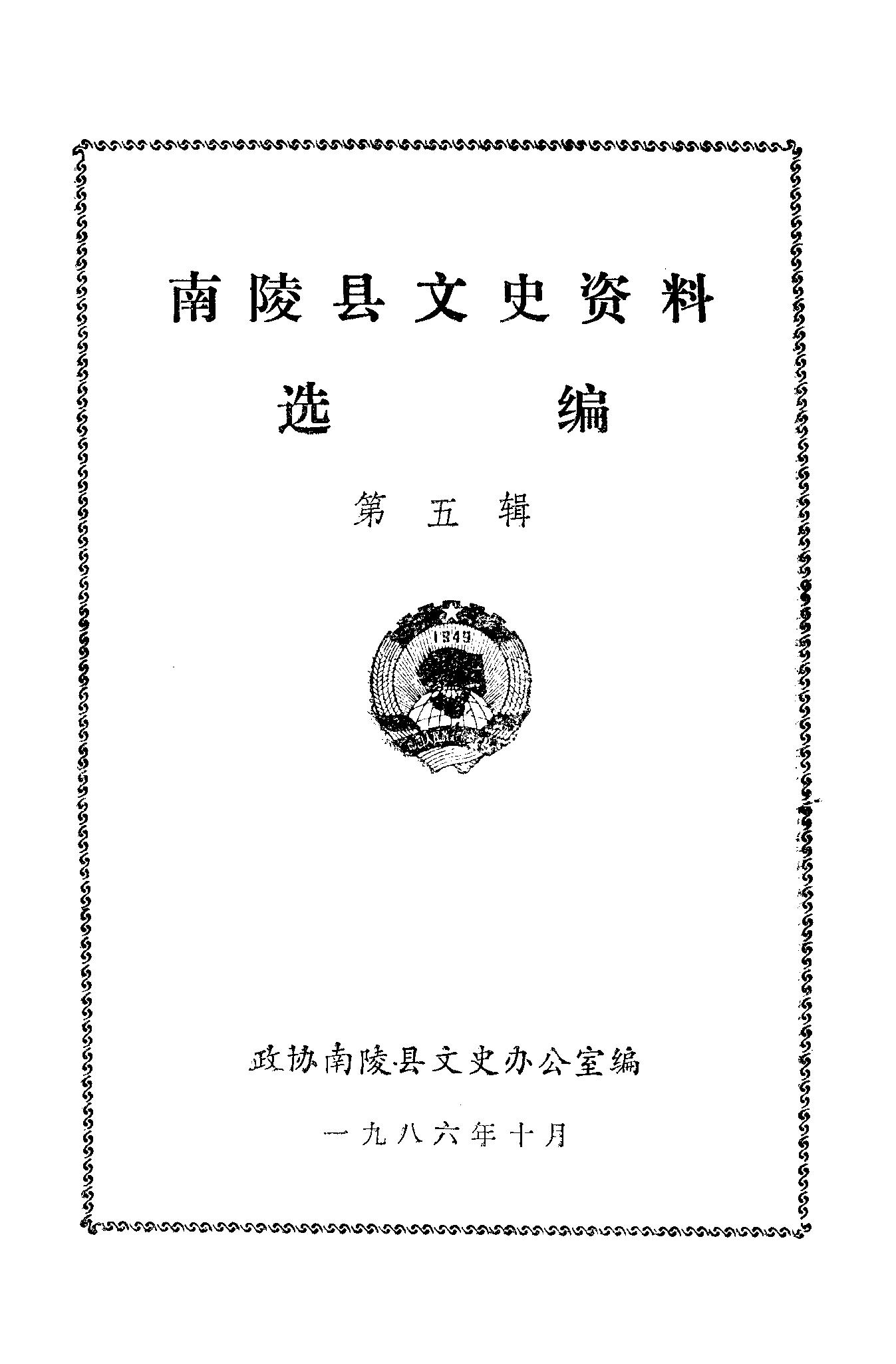 南陵縣文史資料選編第五輯_政協南陵縣文史辦公室