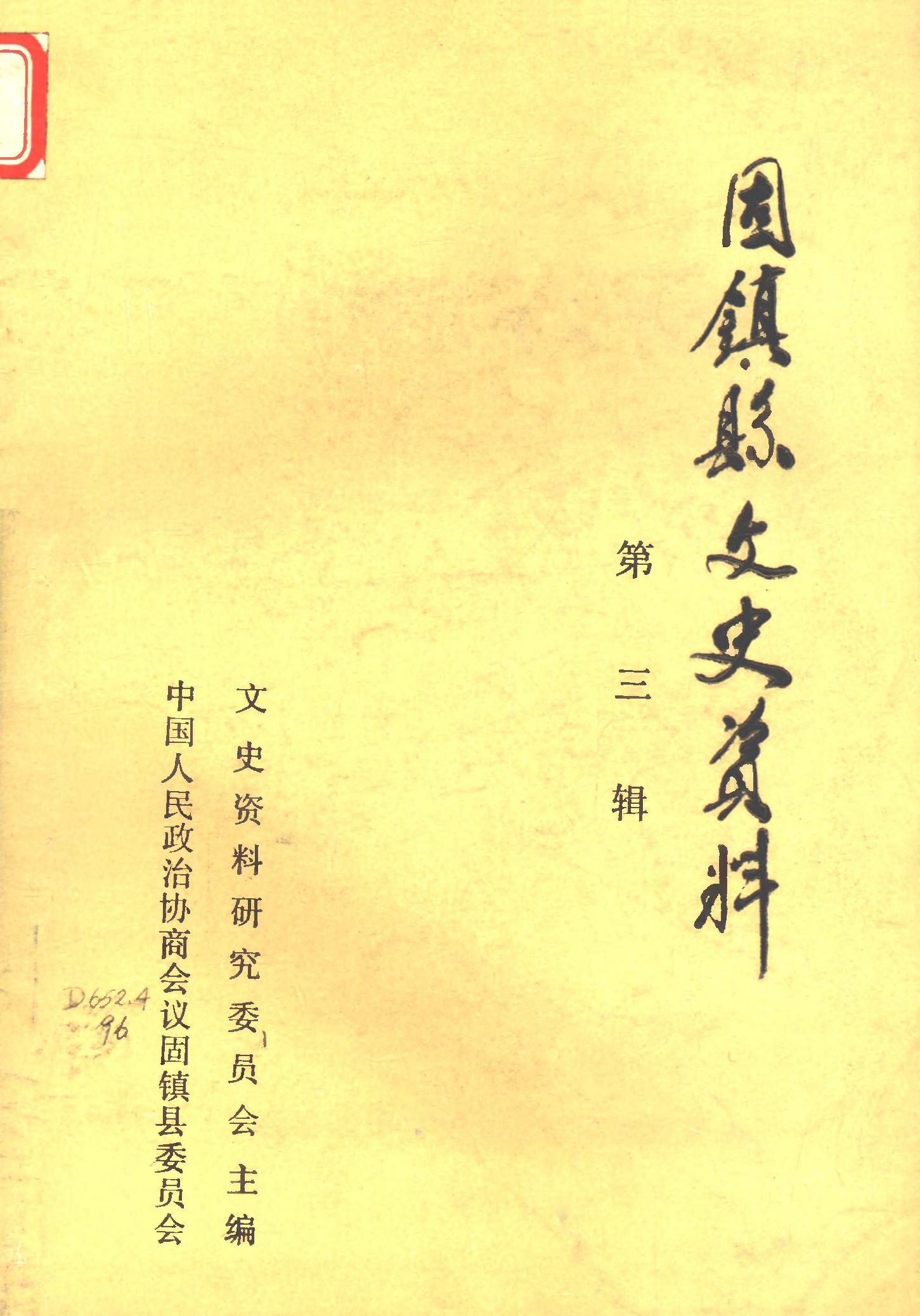 周鎮縣文史資料第三輯_政協固鎮縣委員會文史資料研究委員會
