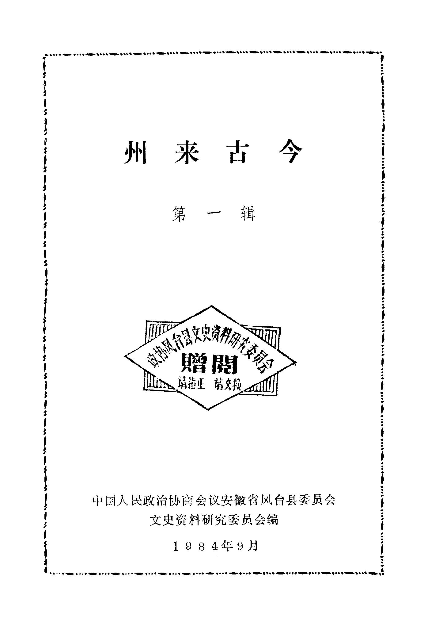 州來古今第一輯_政協安徽省鳳台縣委員會文史資料研究委員會