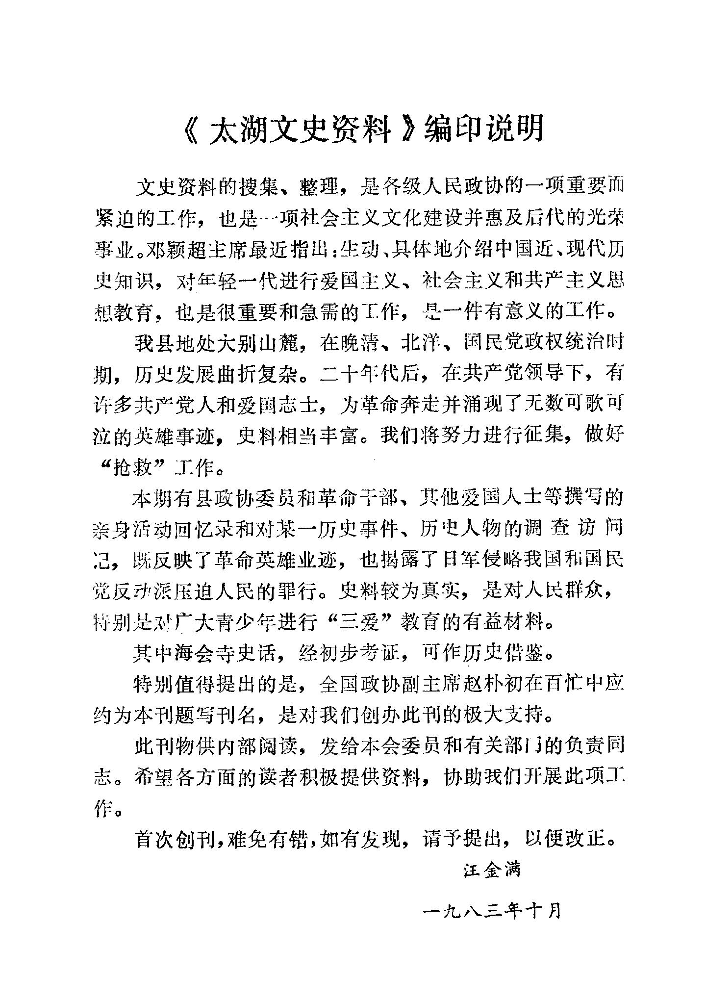 太湖文史資料第一輯_政協太湖縣委員會辦公室政協太湖縣委員會文史組