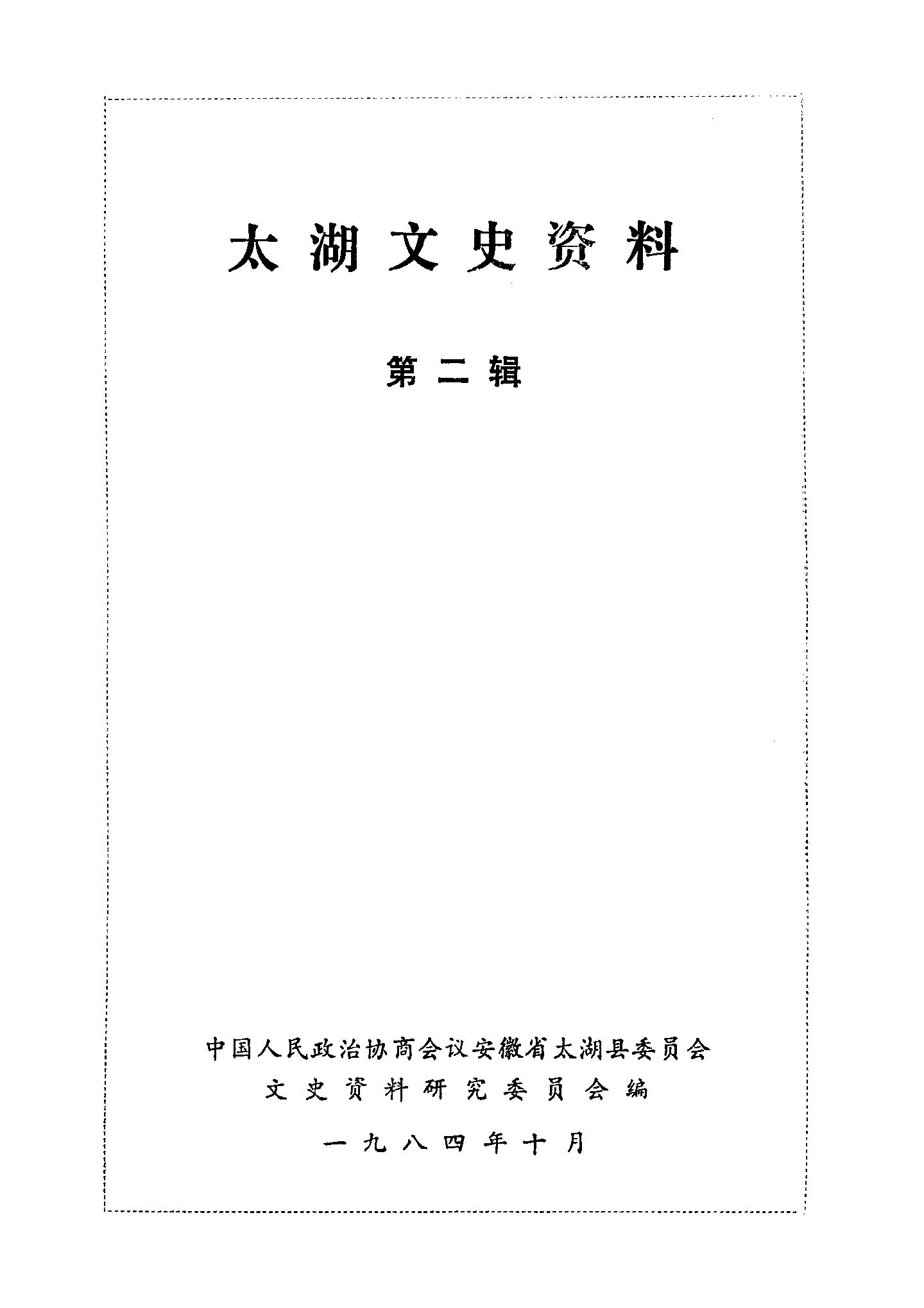 太湖文史資料第二輯_政協安徽省太湖縣委員會文史資料研究委員會