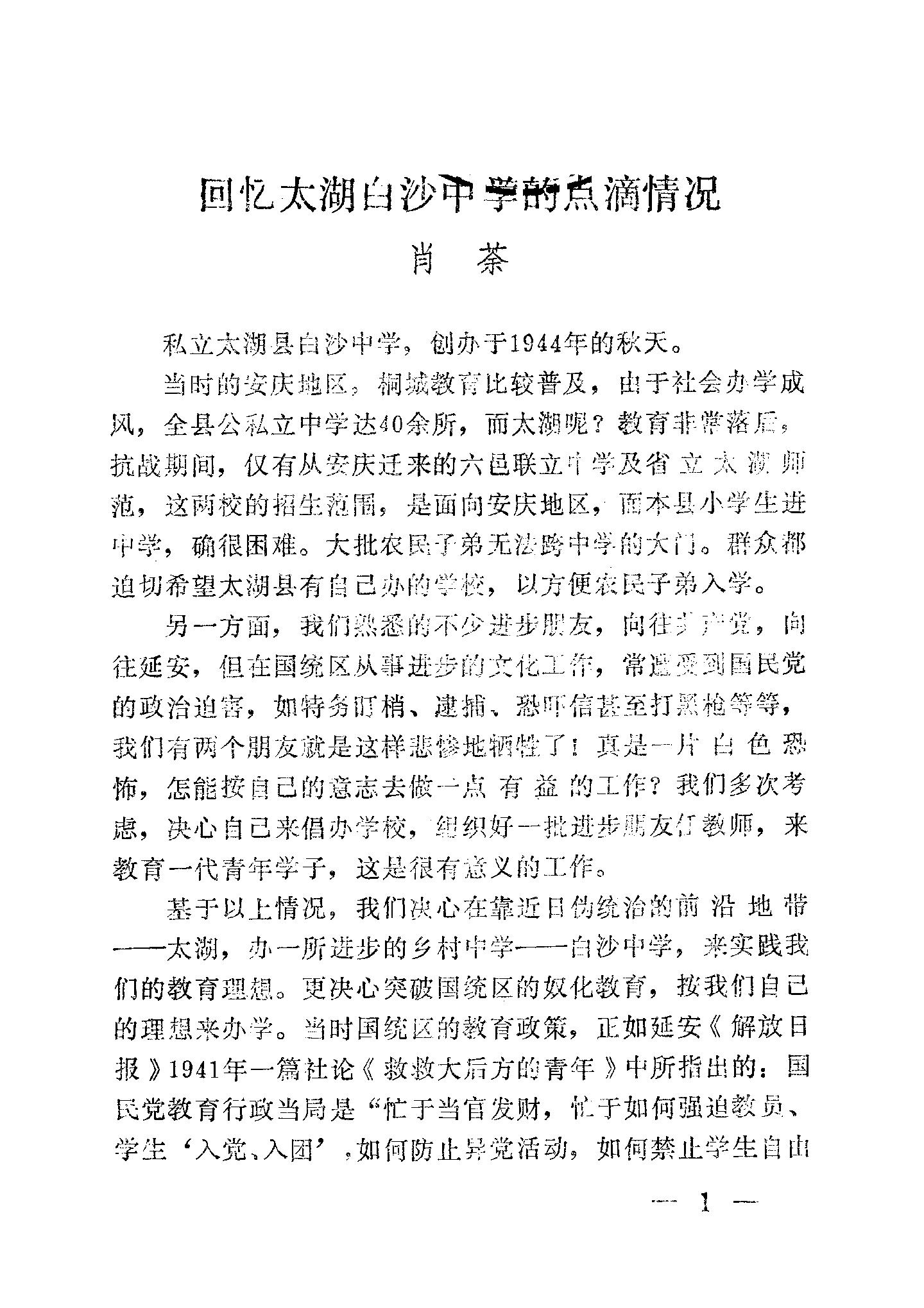摘自《太湖文史資料第二輯_政協安徽省太湖縣委員會文史資料研究委員會》