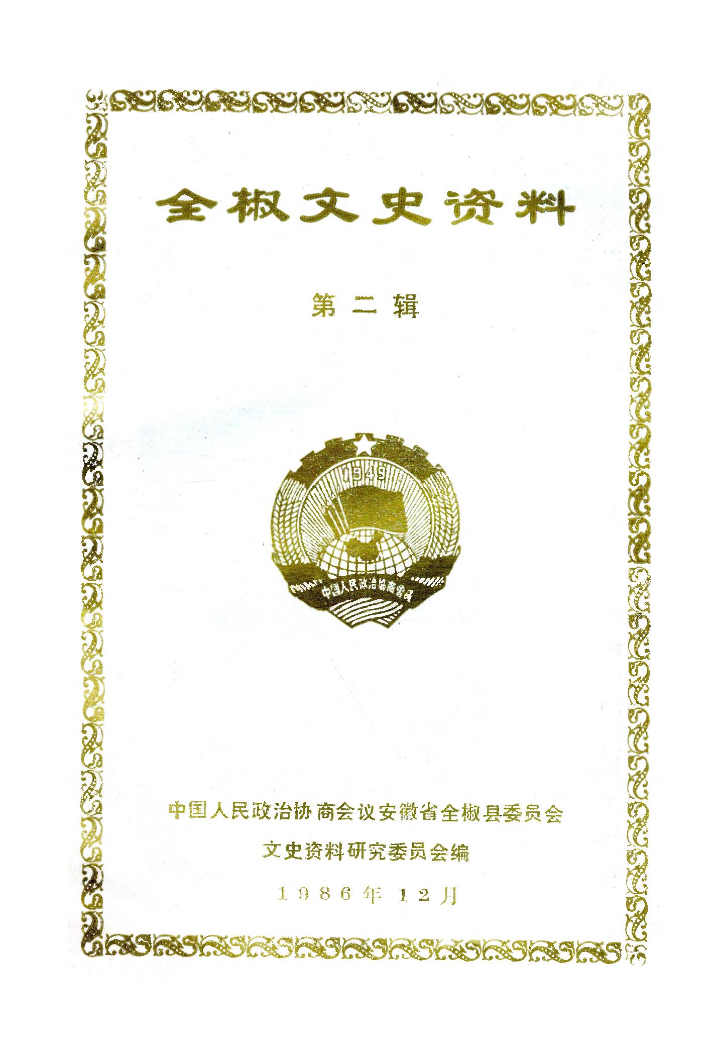 全椒文史資料第二輯_政協安徽省全椒縣委員會文史資料研究委員會