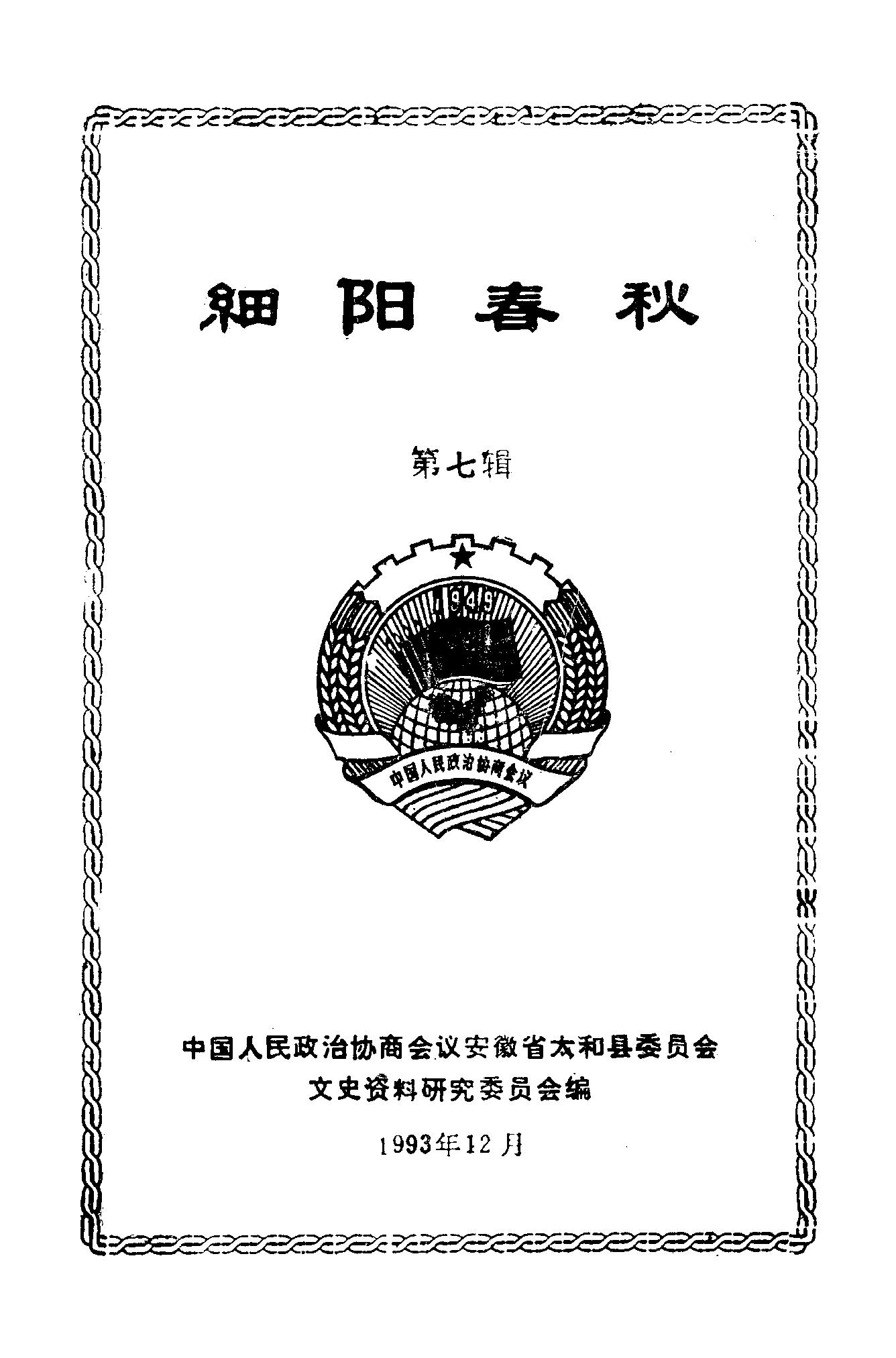 細陽春秋第七輯_政協安徽省太和縣委員會文史資料研究委員會