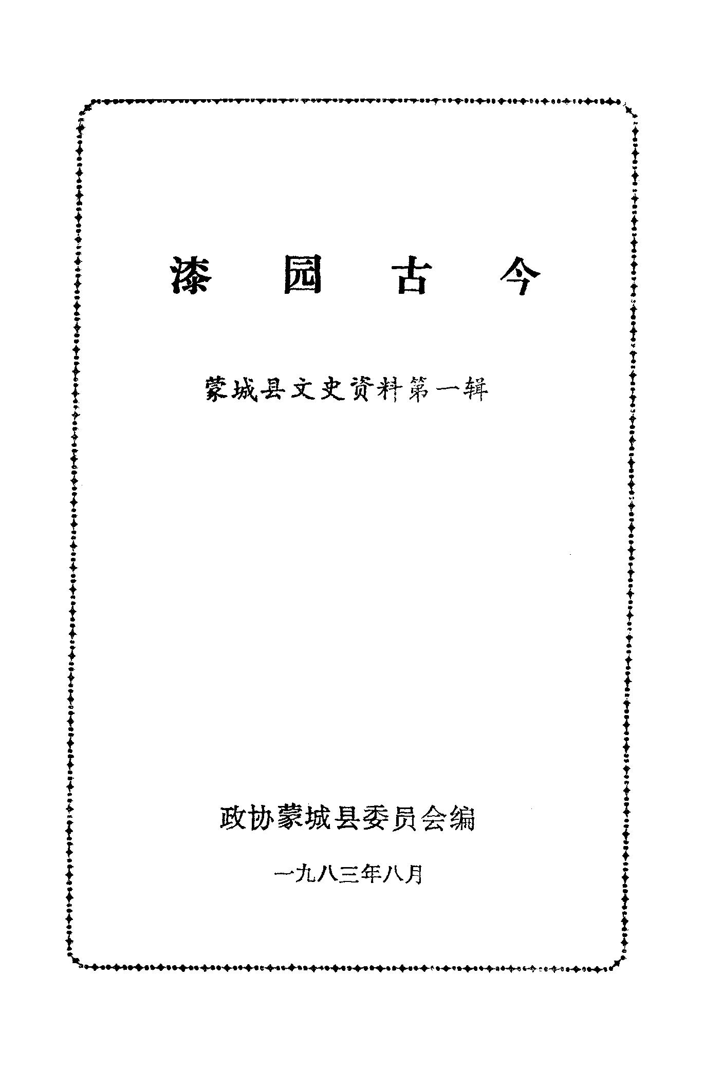 蒙城縣文史資料第一輯_政協蒙城縣委員會