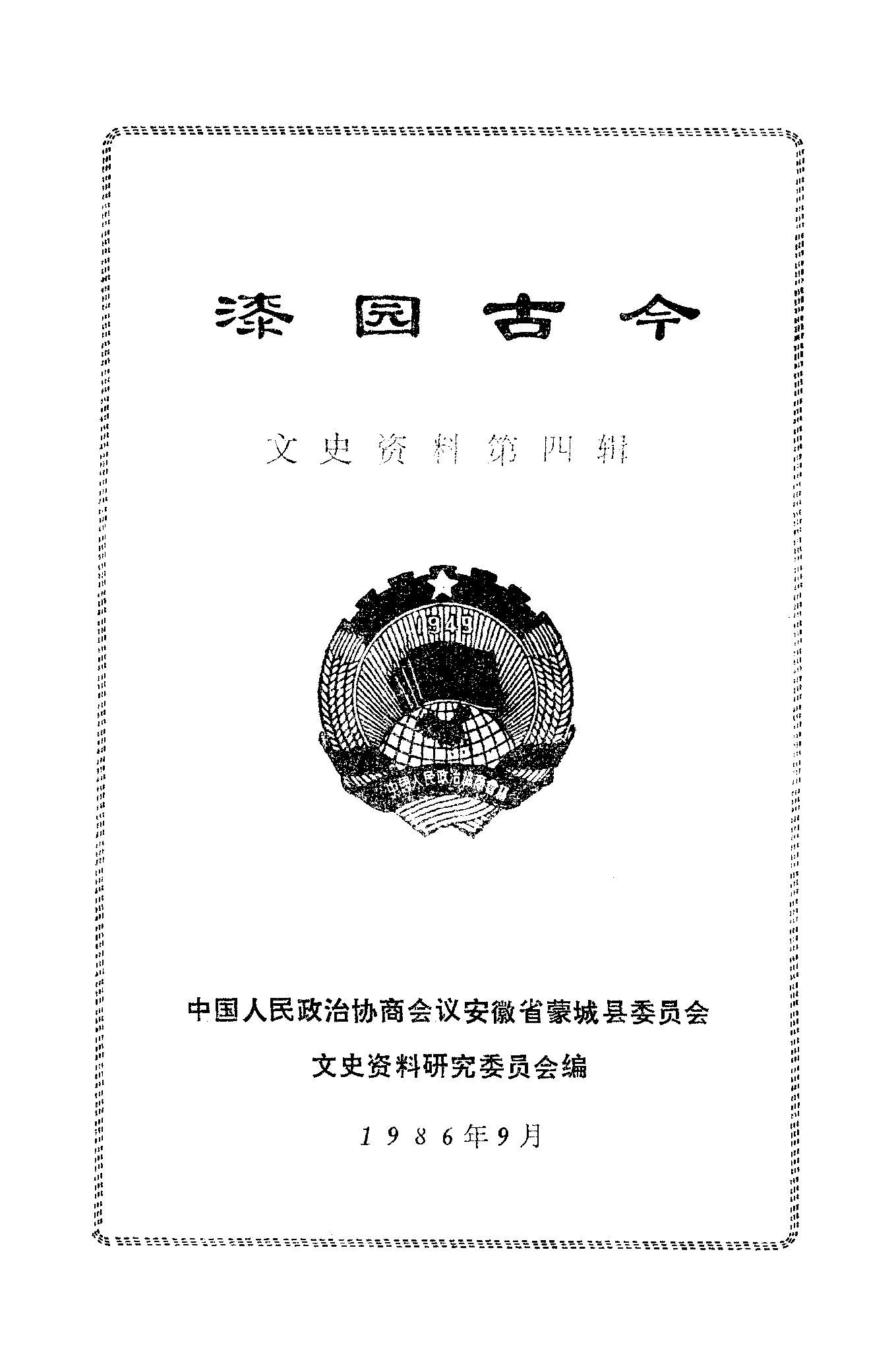 文史資料第四輯_政協安徽省蒙城縣委員會文史資料研究委員會