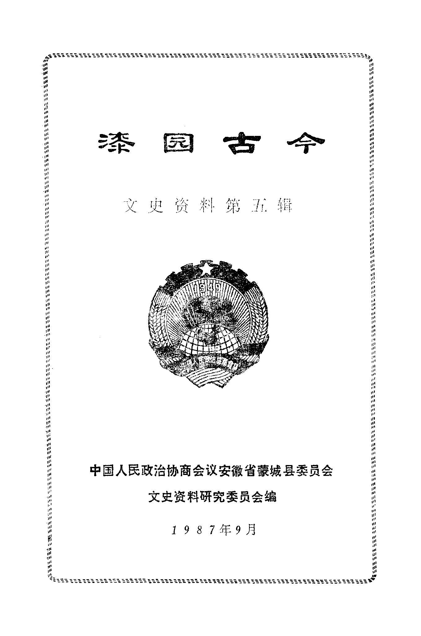 文史資料第五輯_政協安徽省蒙城縣委員會文史資料研究委員會