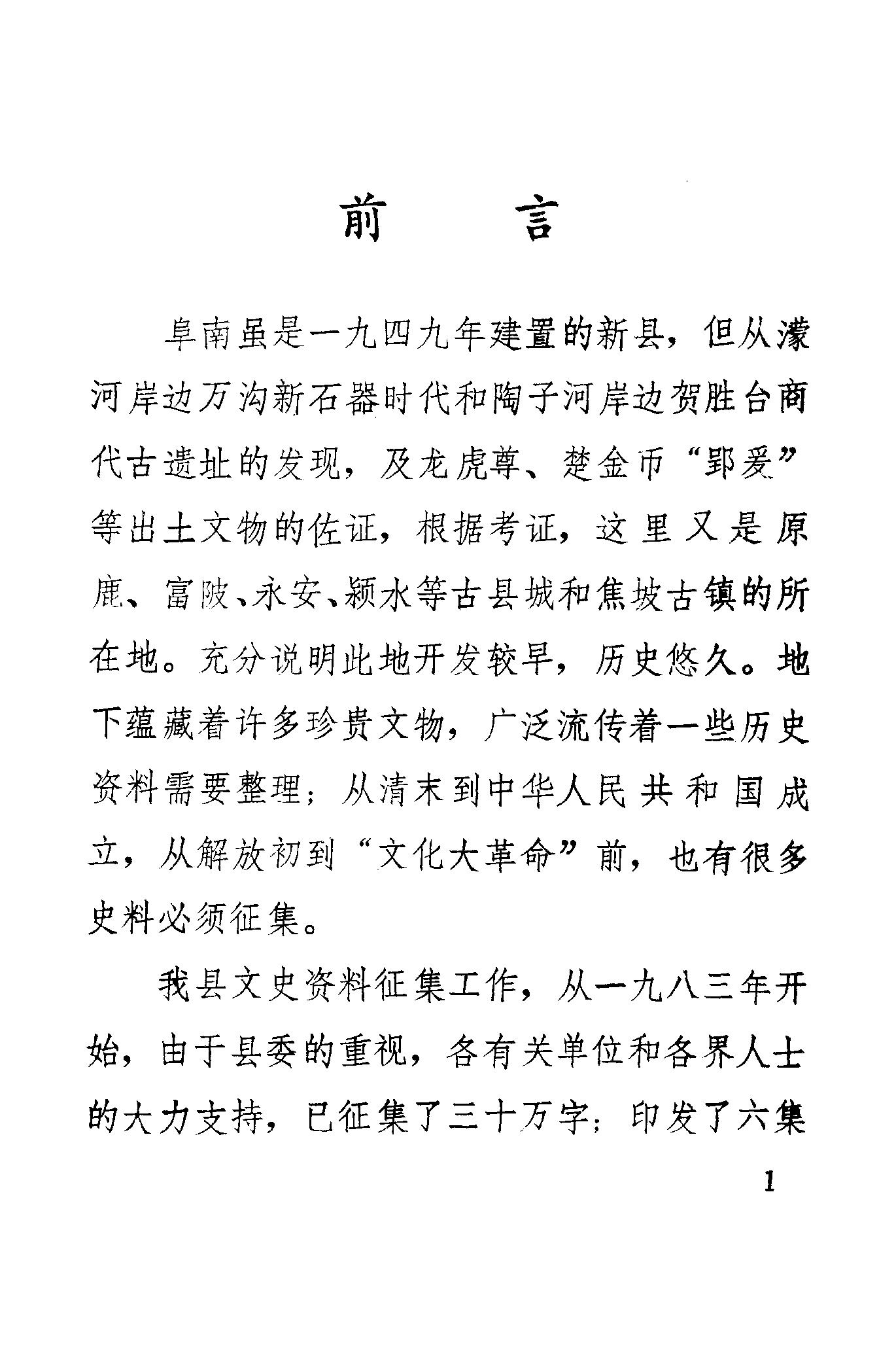 阜南文史資料第一輯_政協阜南縣委員會文史資料辦公室
