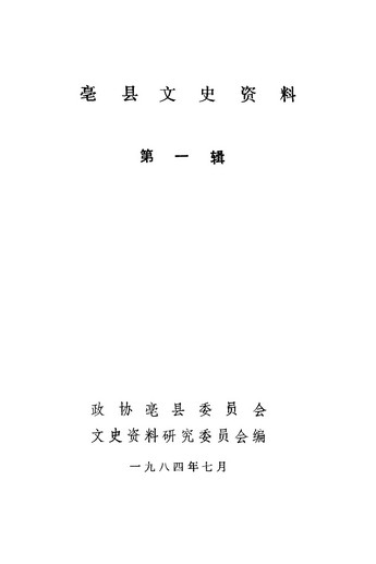 毫縣文史資料第一輯_政協毫縣委員會文史資料研究委員會