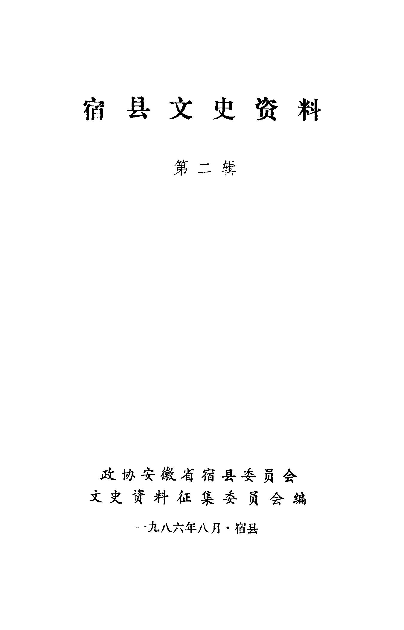 宿縣文史資料第二輯_政協安徽省宿縣委員會文史資料徵集委員會