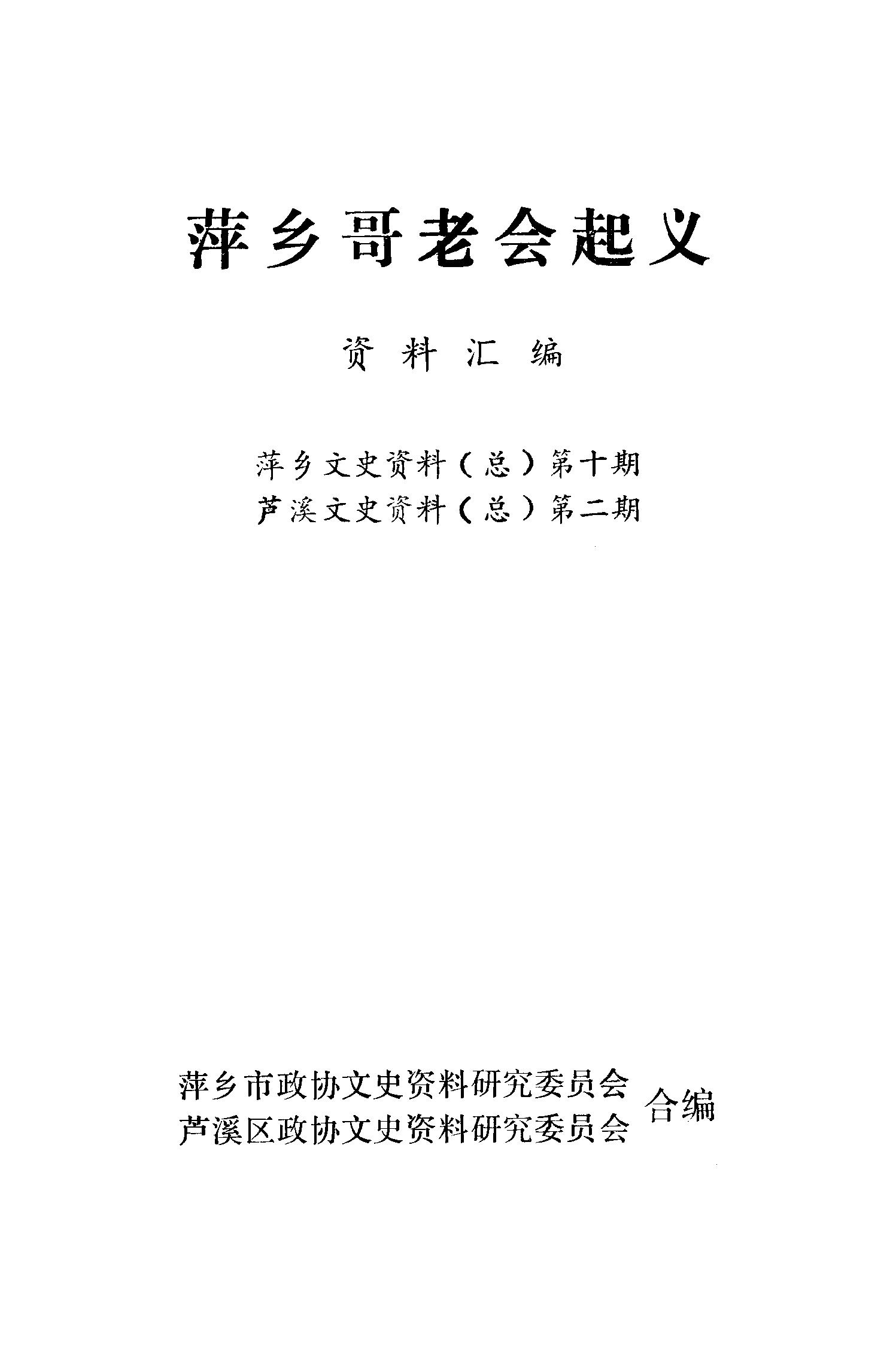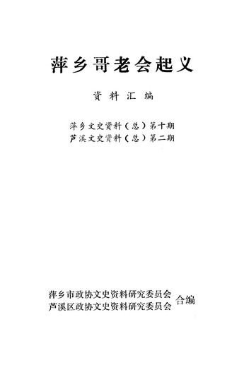 萍鄉文史資料總第十輯_萍鄉市政協文史資料研究委員會蘆溪區政協文史資料研究委員會政協浙江省長興縣委員會文史資料研究委員會