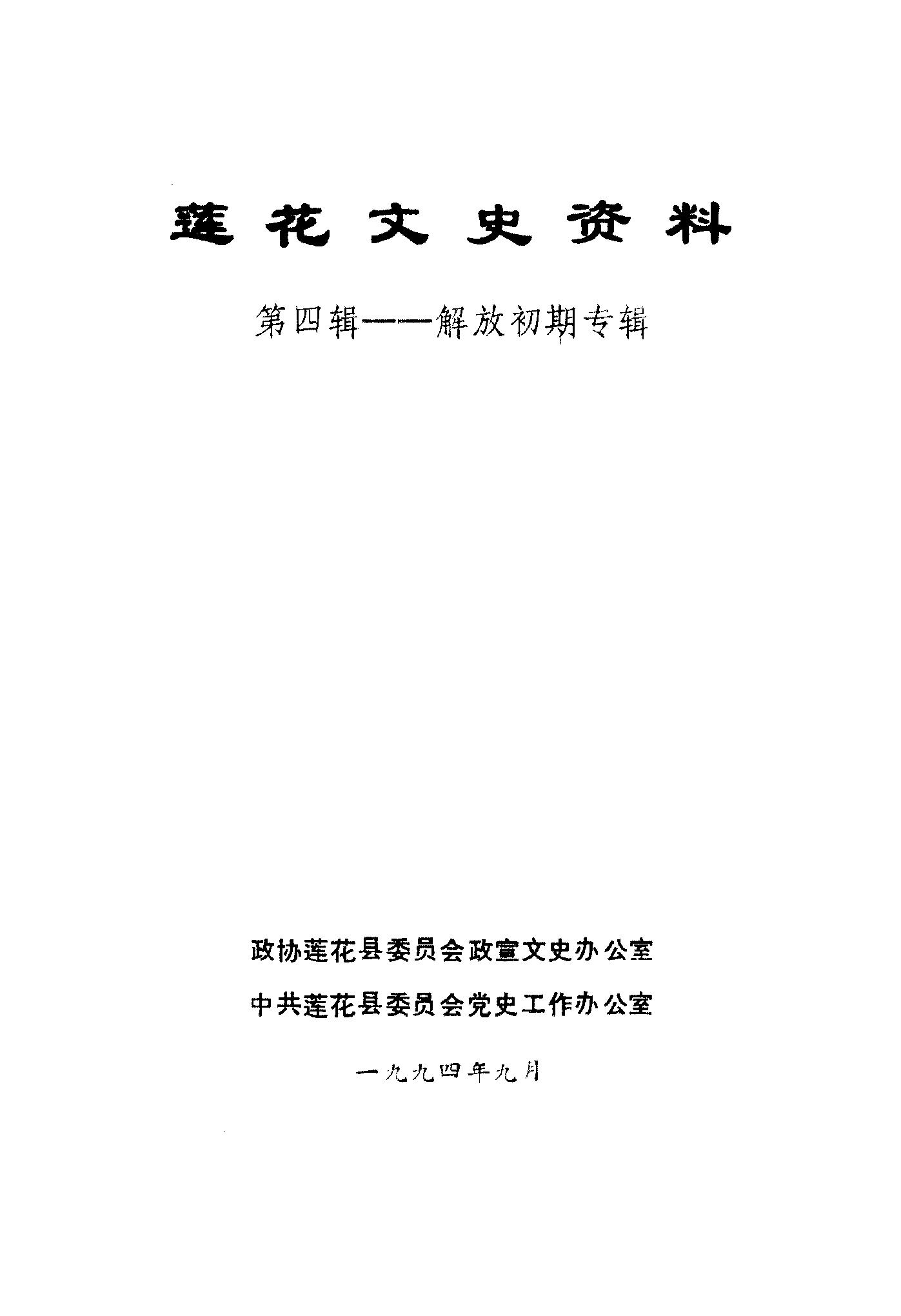 蓮花文史資料第四輯_政協蓮花縣委員會政宣文史辦公室中共蓮花縣委員會黨史工作辦公室