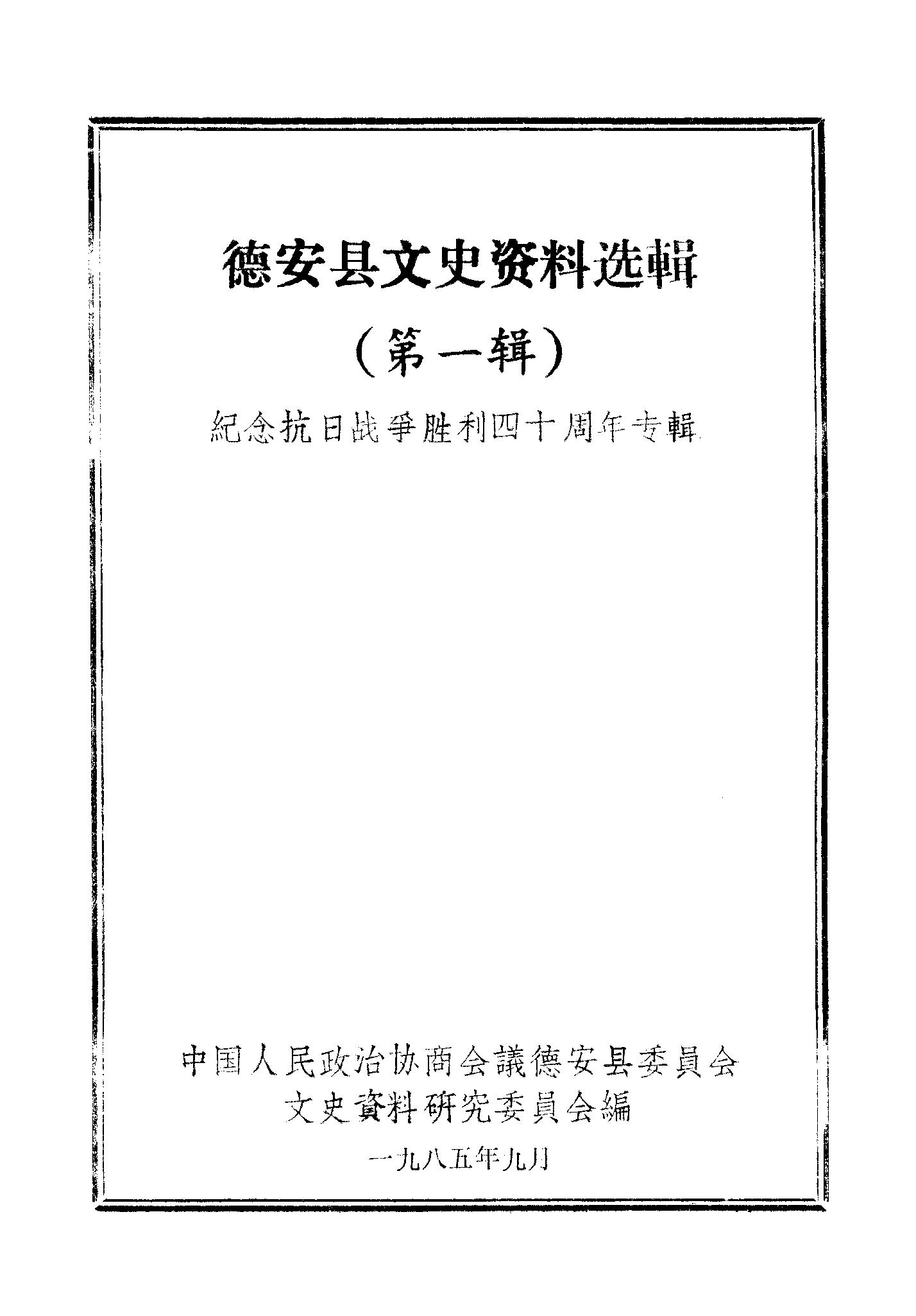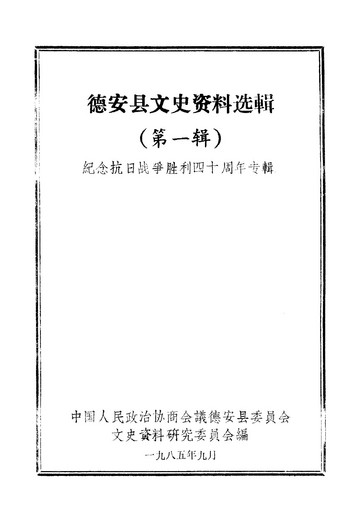 德安縣文史資料選輯第一輯_政協德安縣委員會文史資料研究委員會