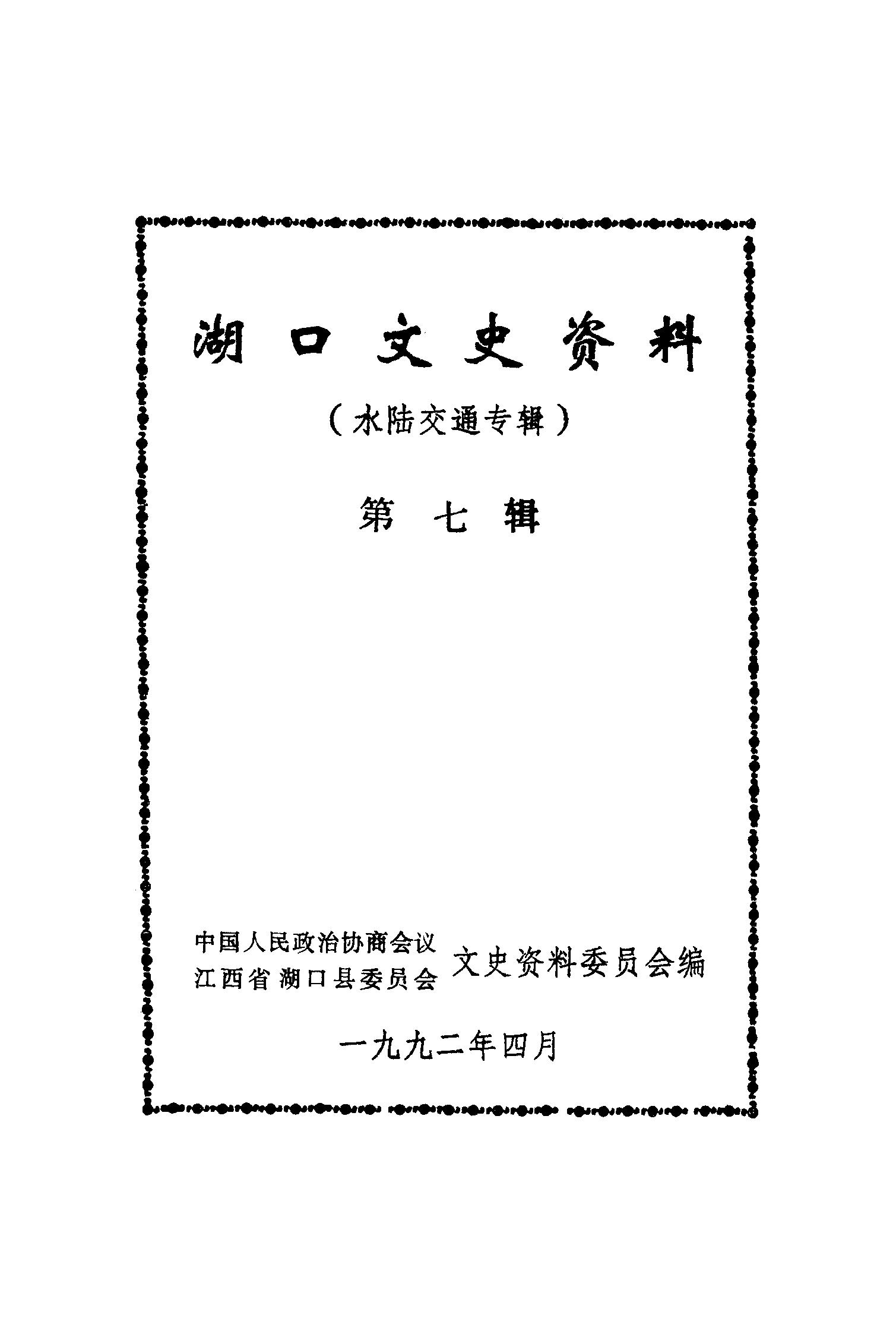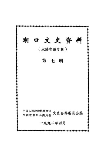 湖口文史資料第七輯_政協江西省湖口縣委員會文史資料委員會