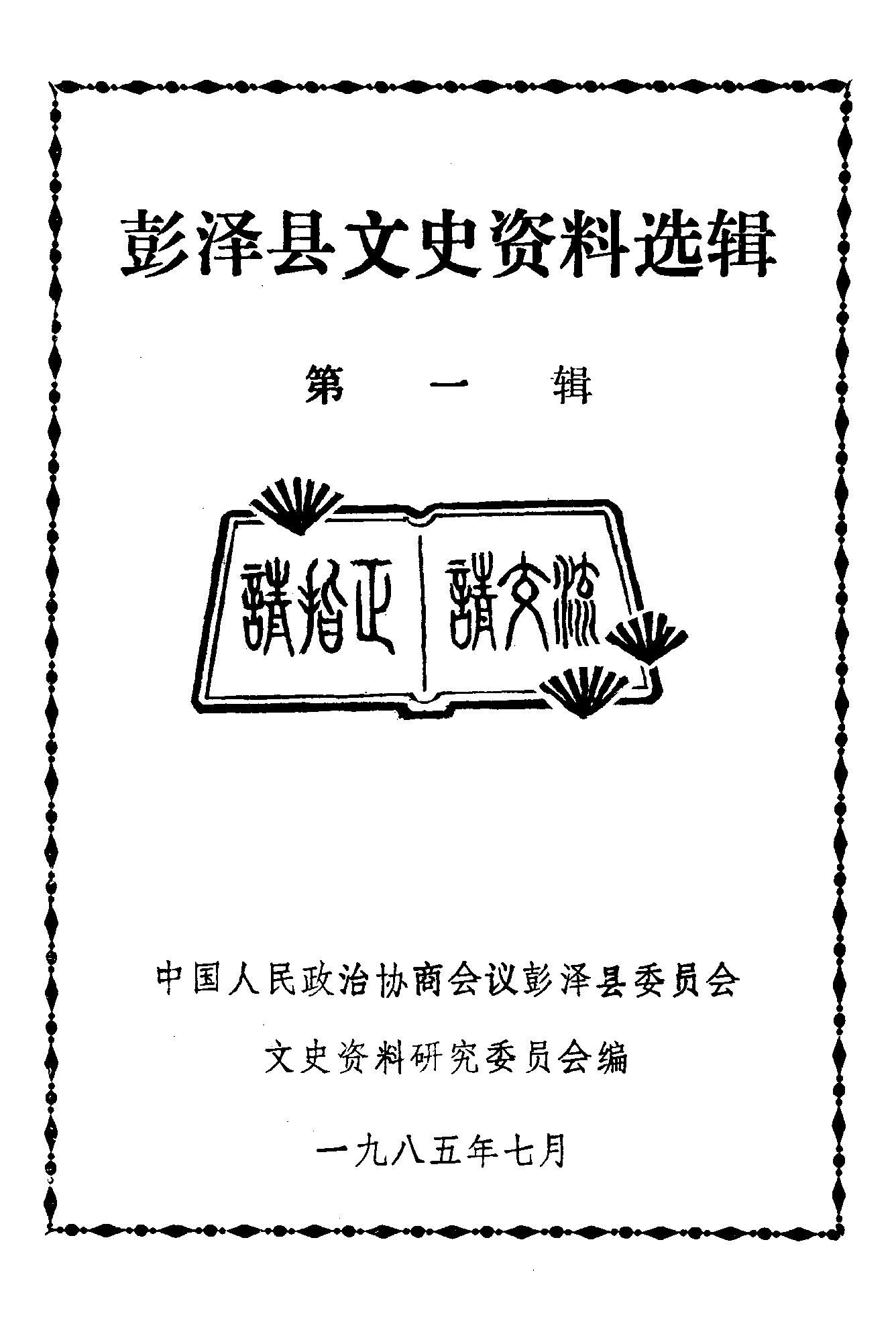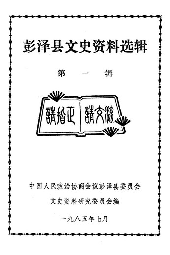 彭澤縣文史資料選輯第一輯_政協彭澤縣委員會文史資料研究委員會