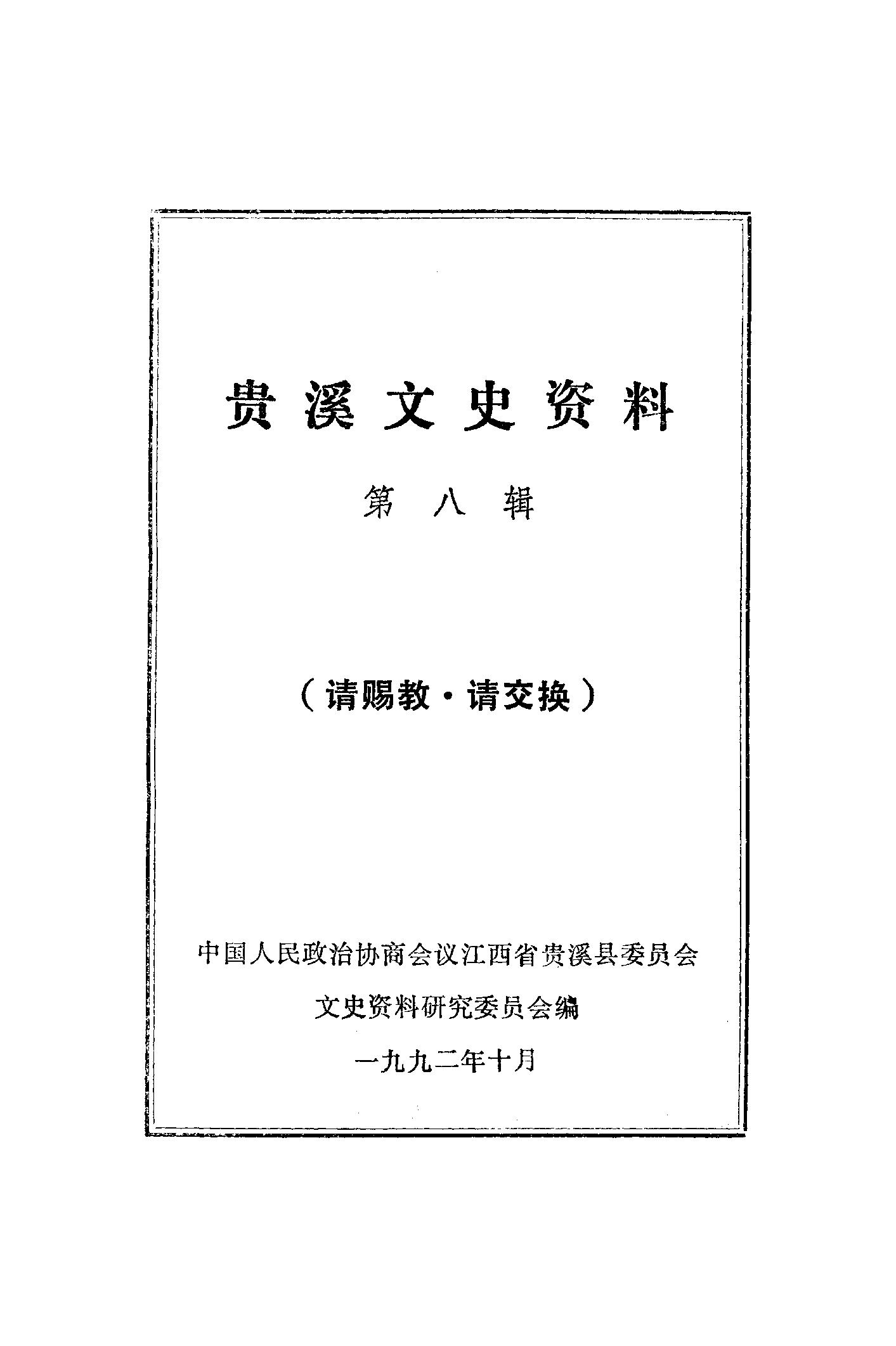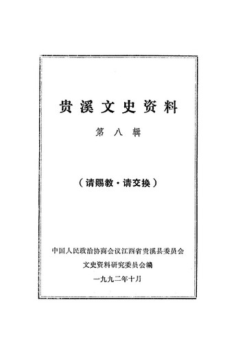 貴溪縣文史資料第八輯_政協江西省貴溪縣委員會文史資料研究委員會