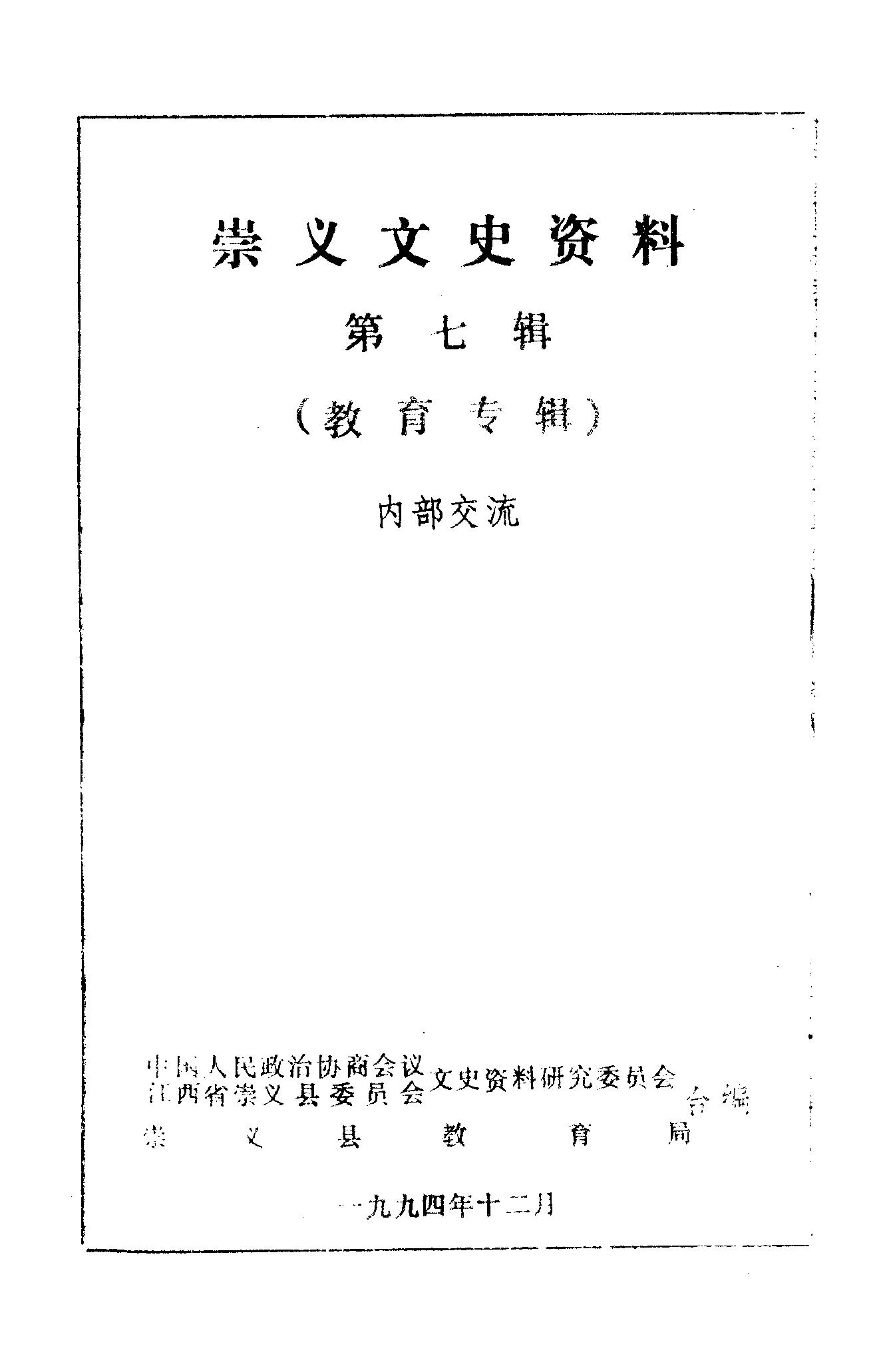 崇義文史資料第七輯_政協江西省崇義縣委員會文史資料研究委員會