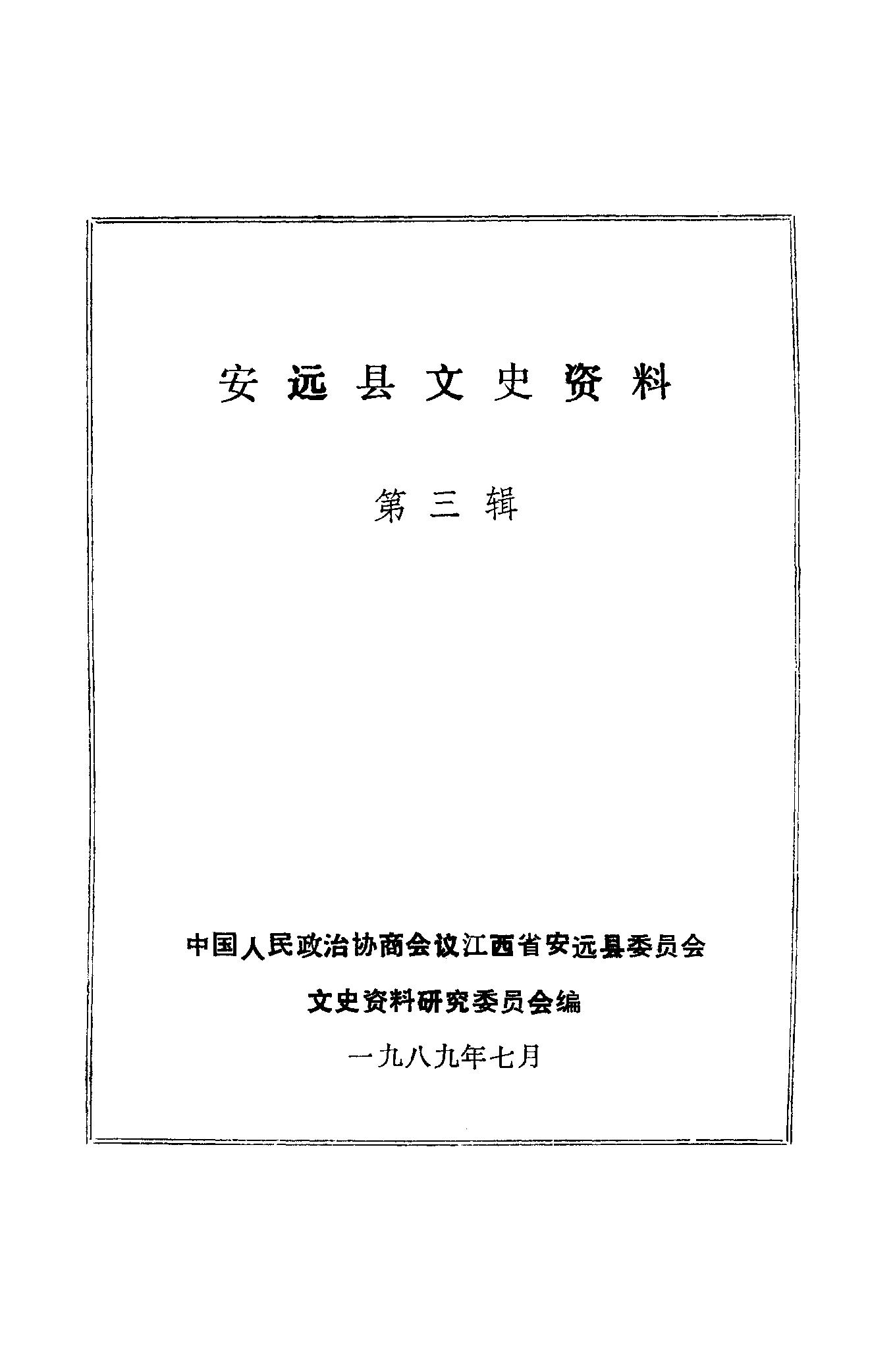 安遠縣文史資料第三輯_政協江西省安遠縣委員會文史資料研究委員會