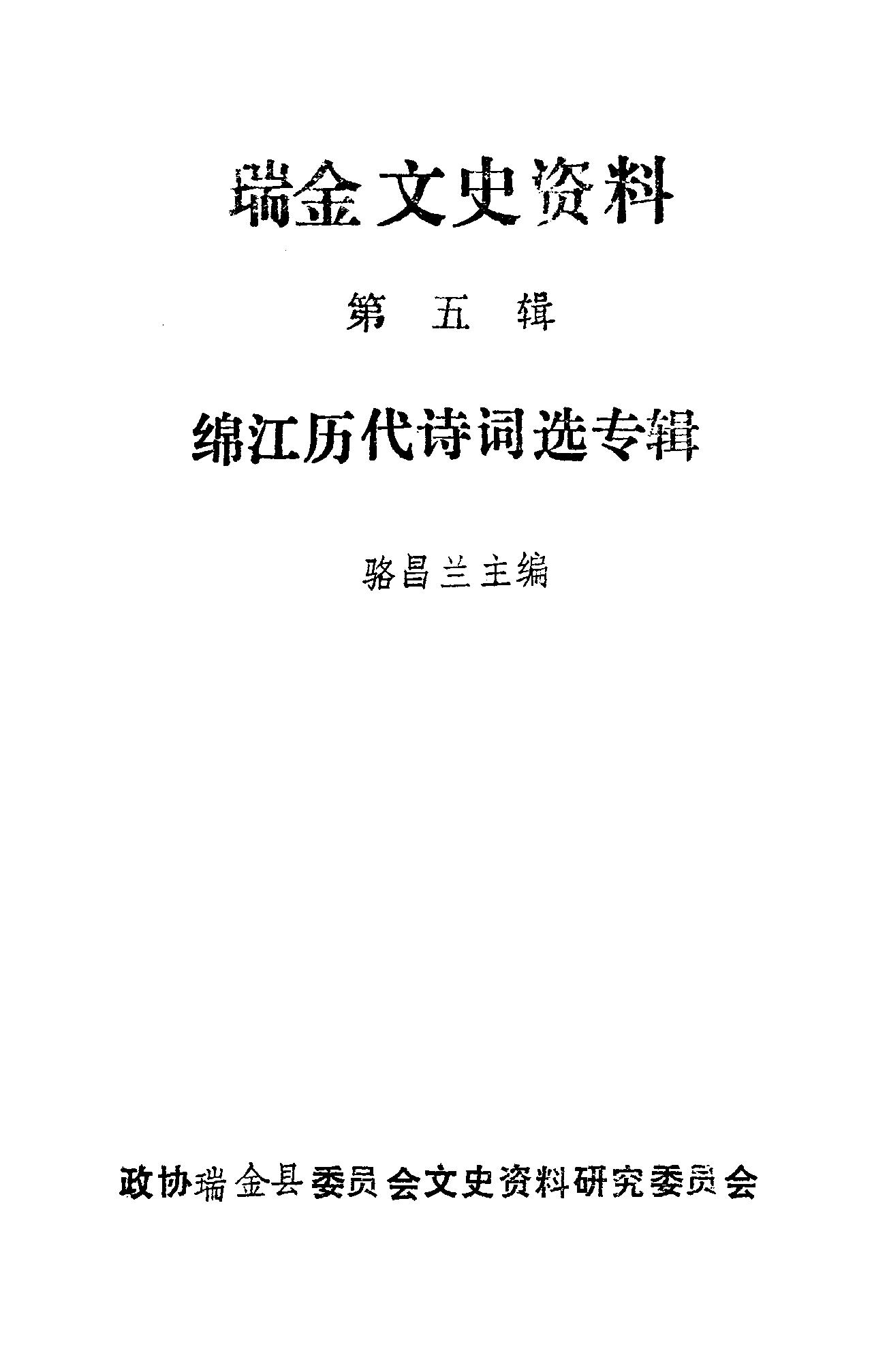 瑞金文史資料第五輯_政協瑞金縣委員會文史資料研究委員會
