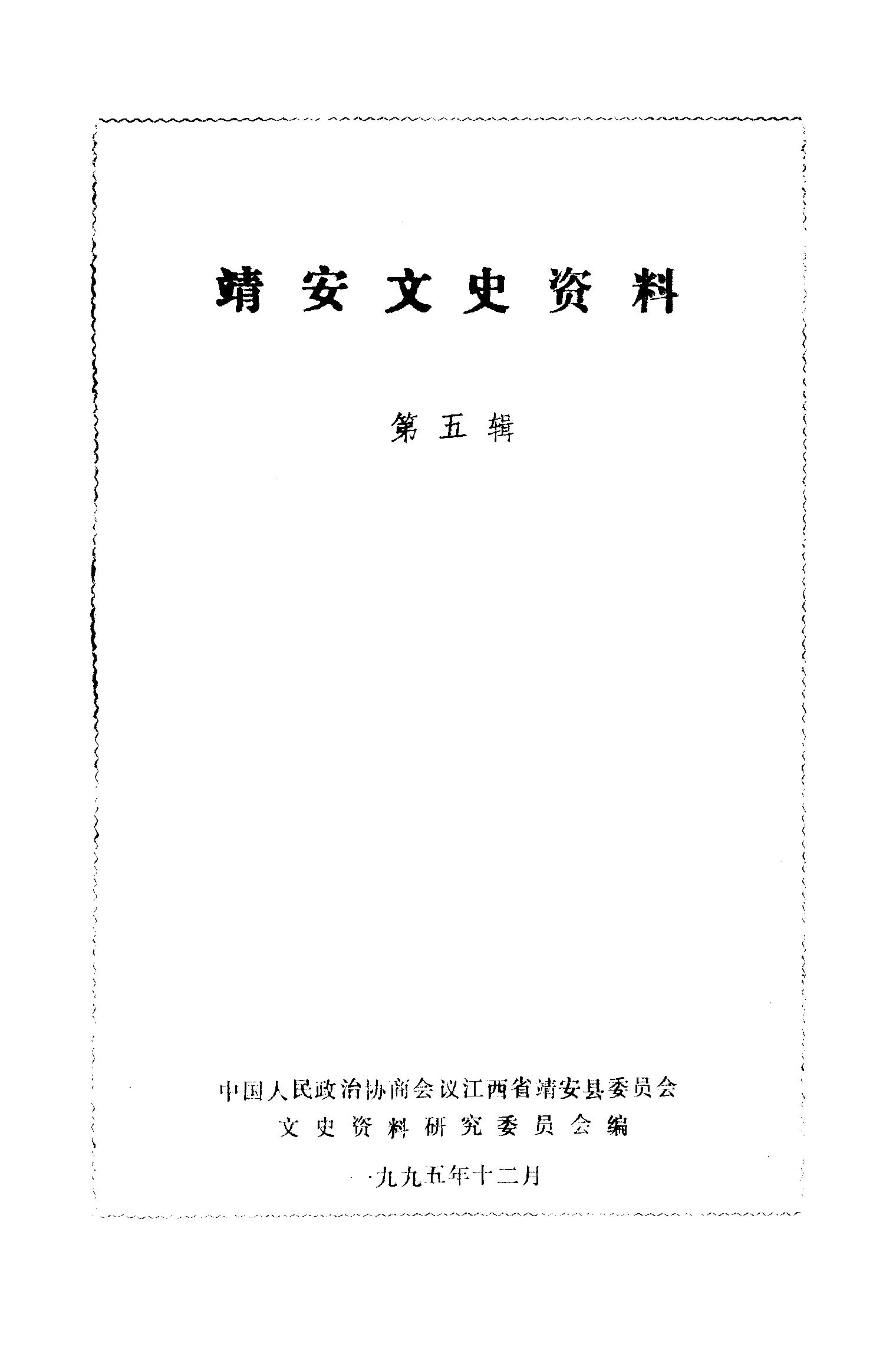 靖安文史資料第五輯_政協江西省靖安縣委員會文史資料研究委員會