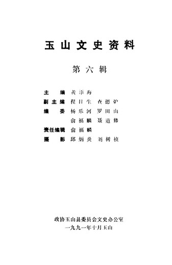 玉山文史資料第六輯_政協玉山縣委員會文史辦公室