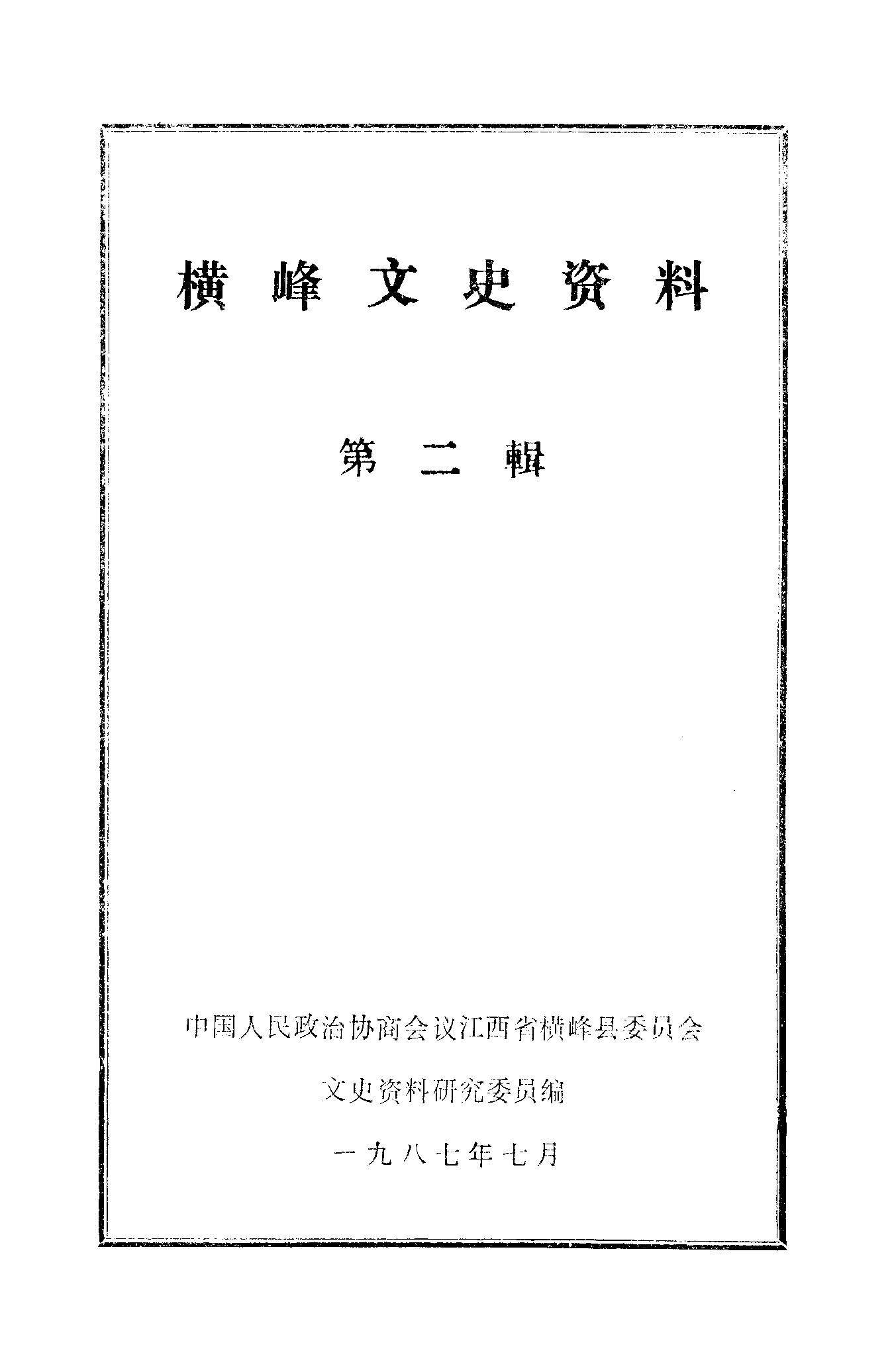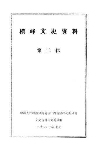 橫峰文史資料第二輯_政協江西省橫峰縣委員會文史資料研究委員會