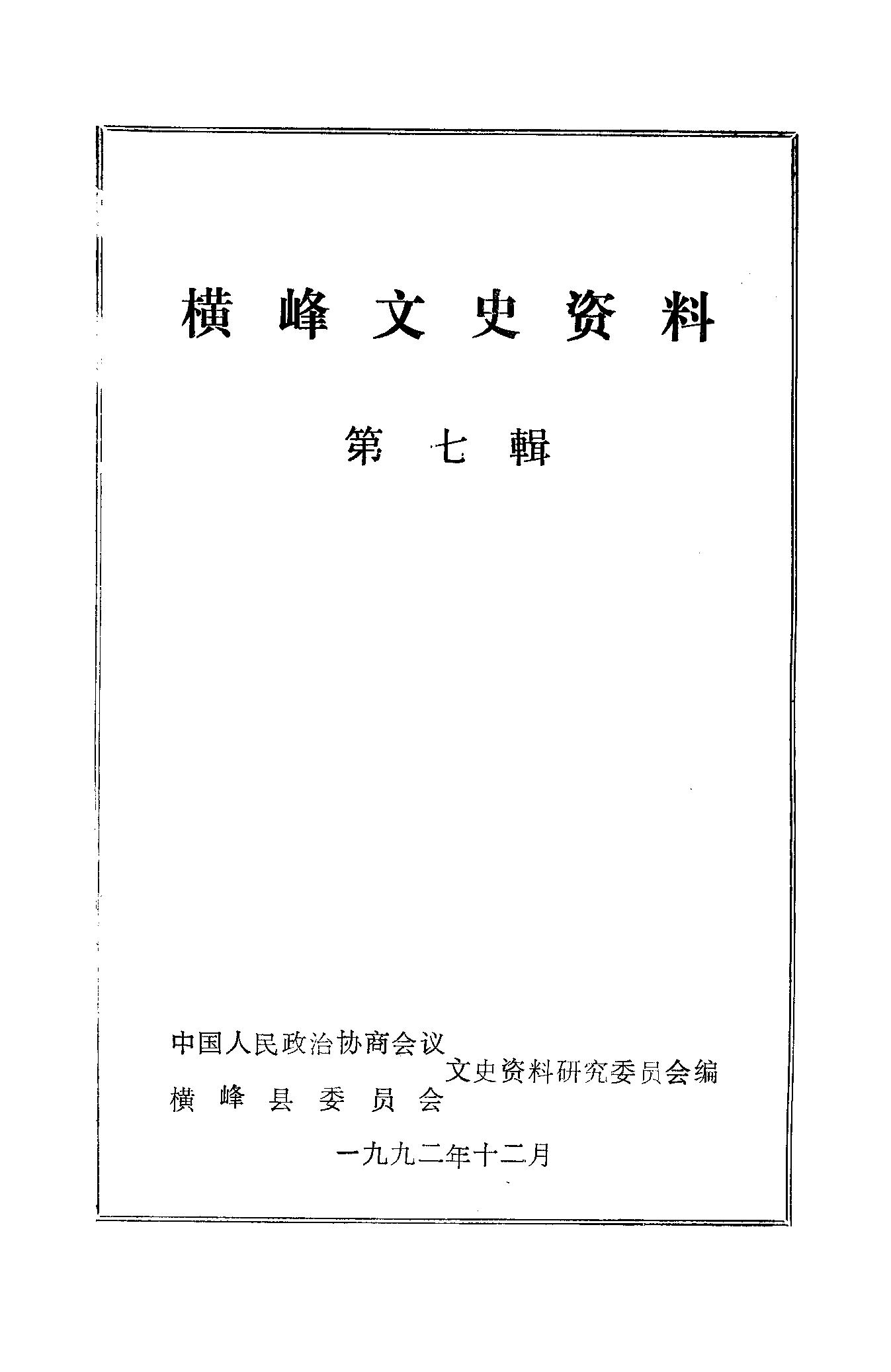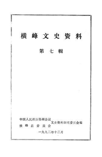 橫峰文史資料第七輯_政協橫峰縣委員會文史資料研究委員會
