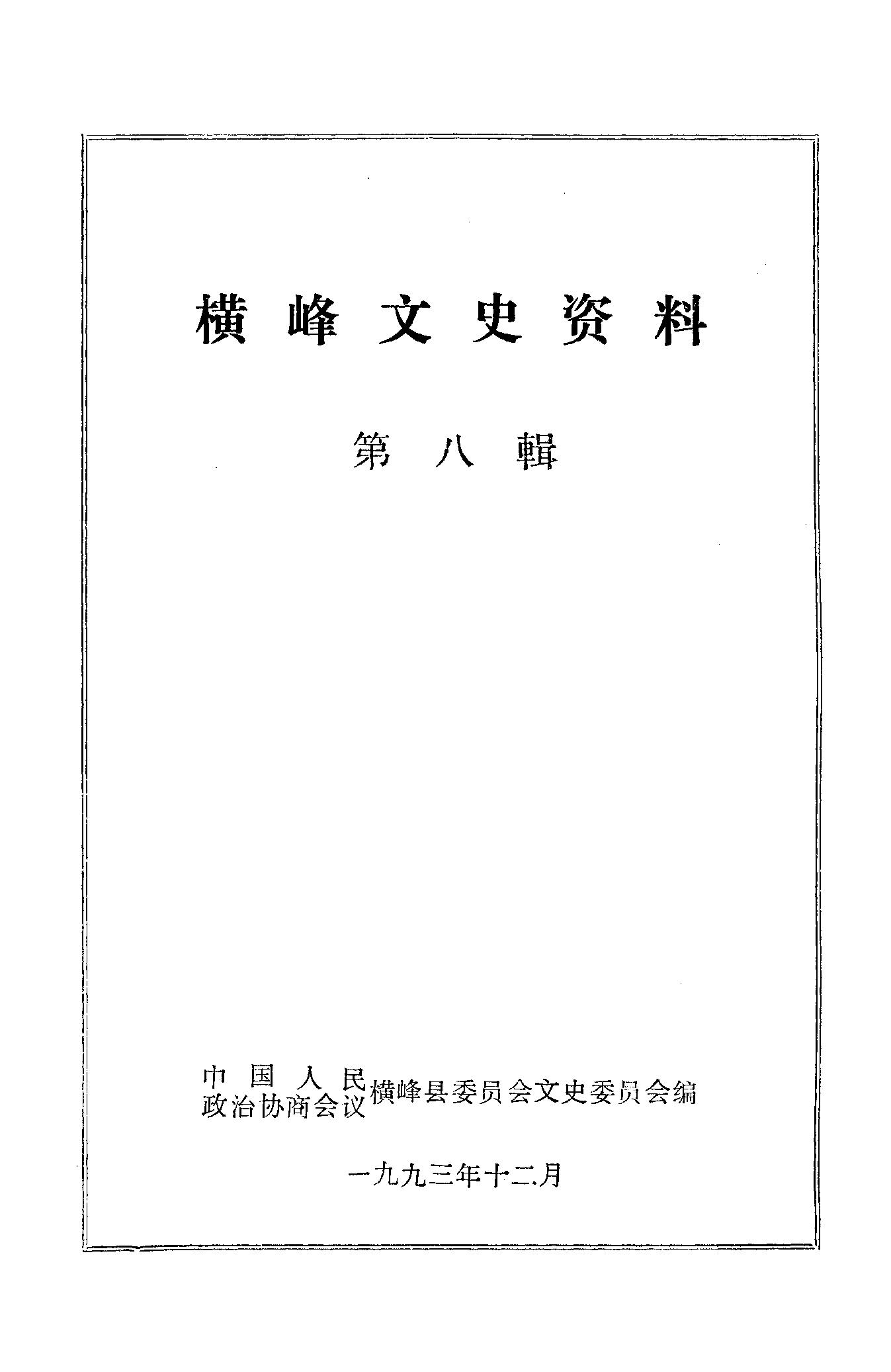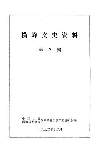 橫峰文史資料第八輯_政協橫峰縣委員會文史資料研究委員會
