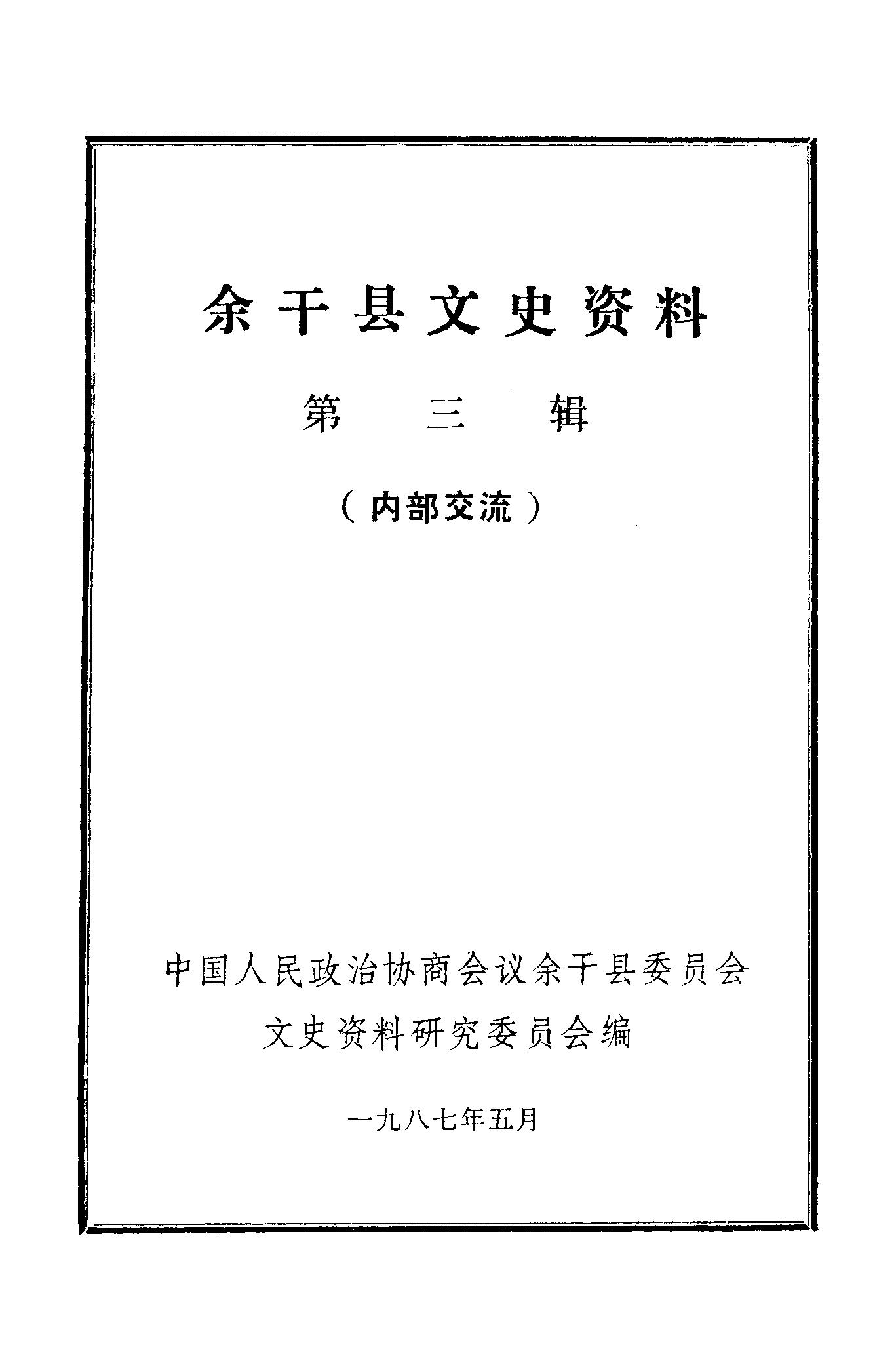 余干縣文史資料第三輯_政協余干縣委員會文史資料研究委員會