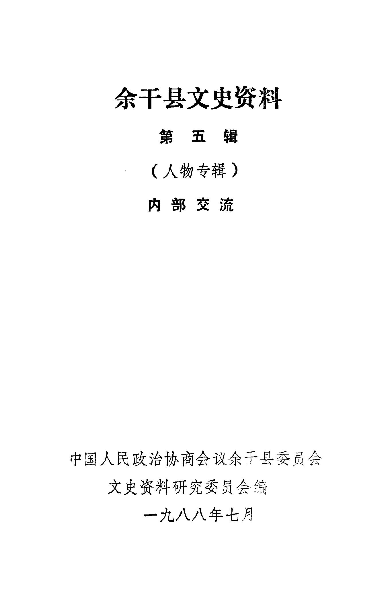 余干縣文史資料第五輯_政協余干縣委員會文史資料研究委員會