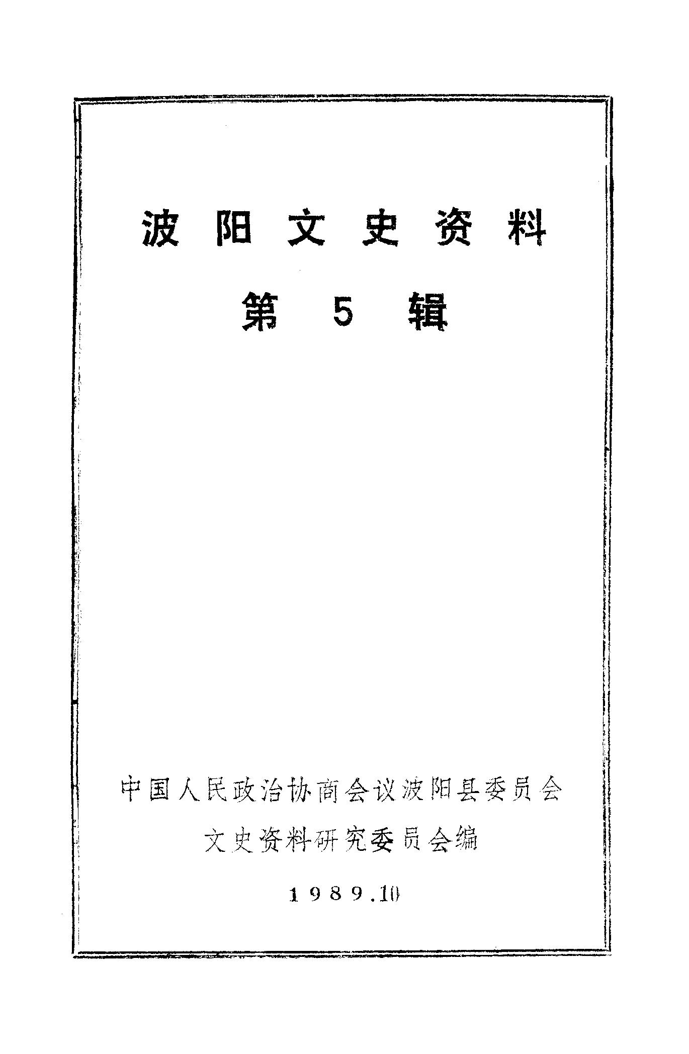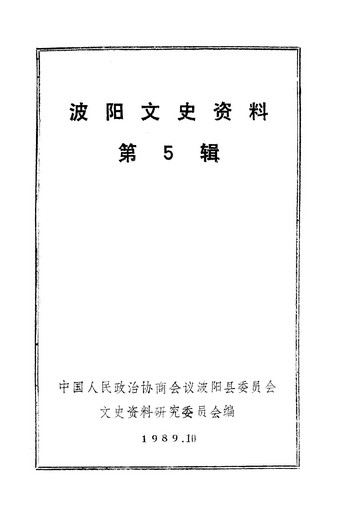 波陽文史資料第五輯_政協波陽縣委員會文史資料研究委員會