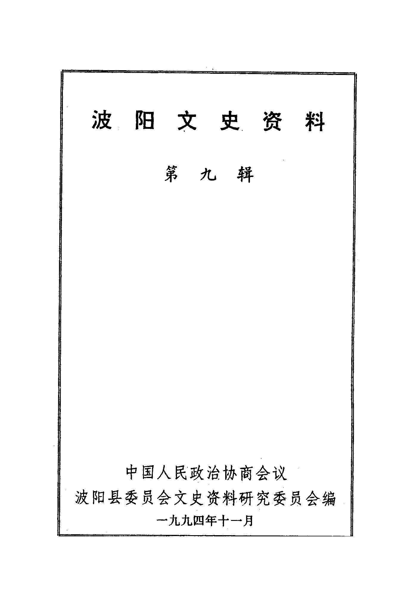 波陽文史資料第九輯_政協波陽縣委員會文史資料研究委員會