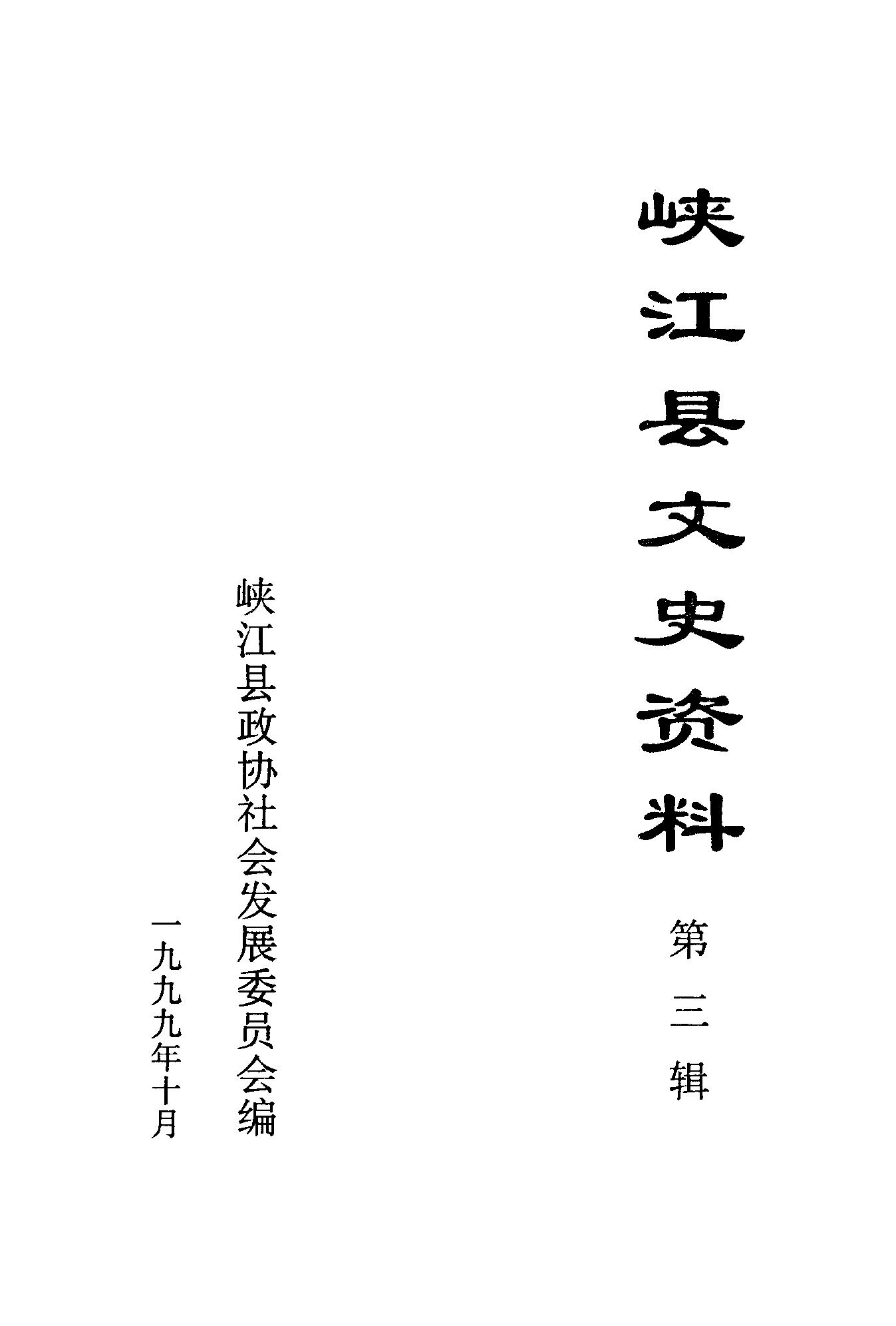 峽江縣文史資料第三輯_峽江縣政協社會發展委員會