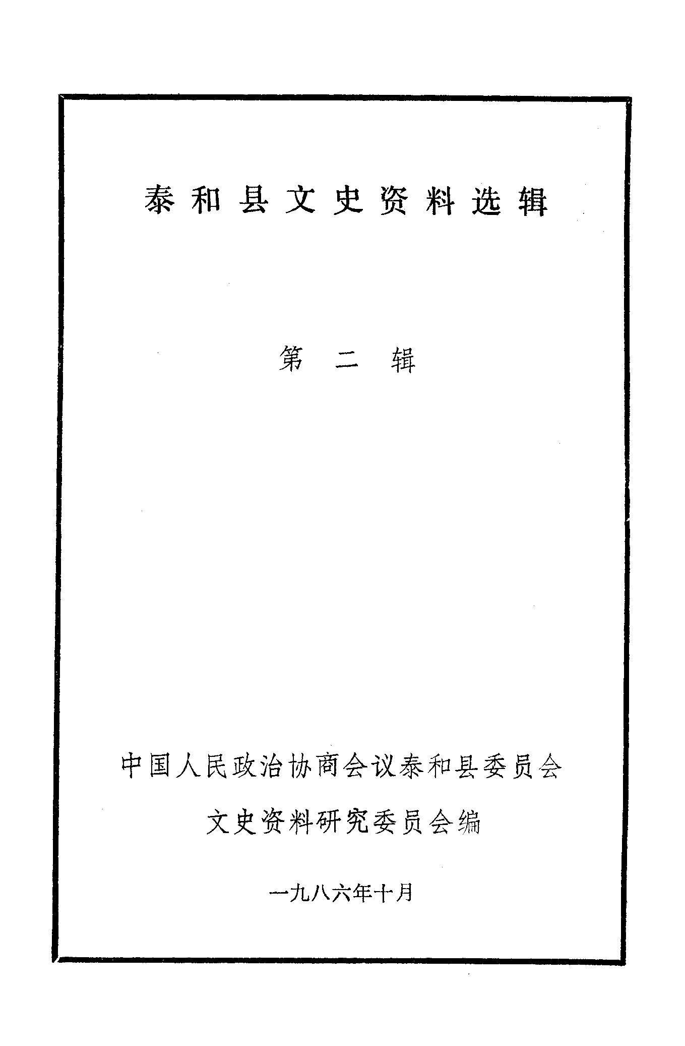 泰和縣文史資料選輯第二輯_政協泰和縣委員會文史資料研究委員會