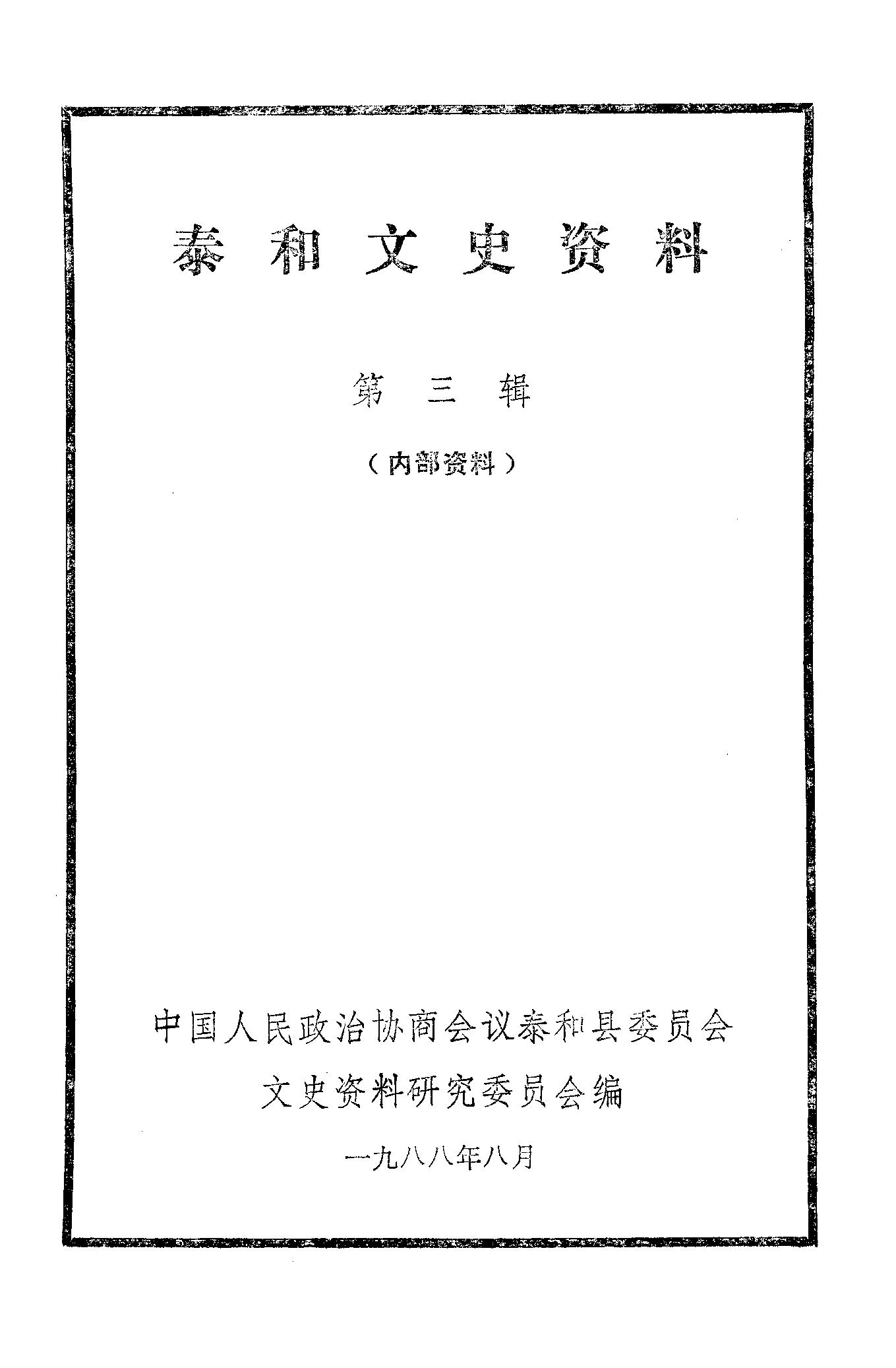 泰和文史資料第三輯_政協泰和縣委員會文史資料研究委員會