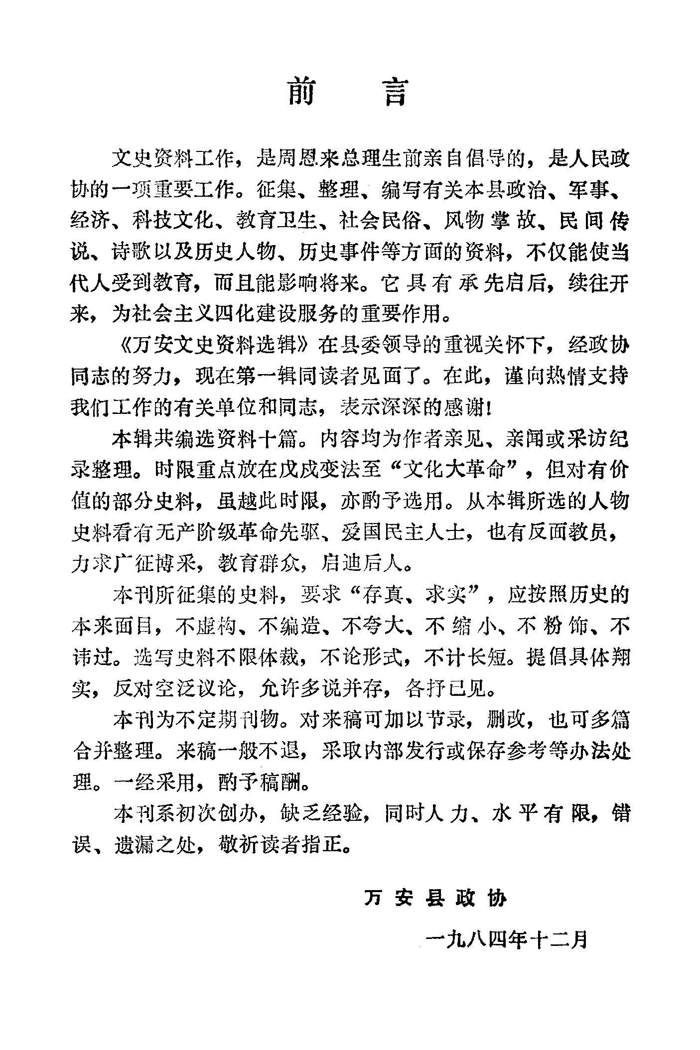 萬安文史資料選輯第一輯_政協萬安縣委員會