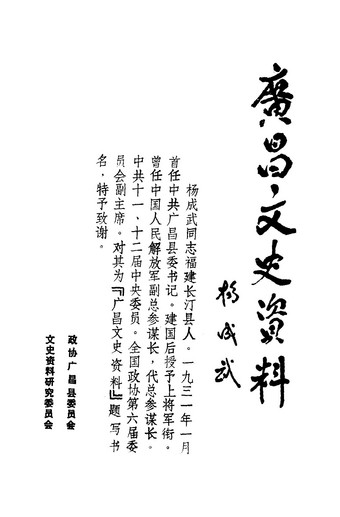 廣昌文史資料第一輯_政協江西省廣昌縣文史資料研究委員會