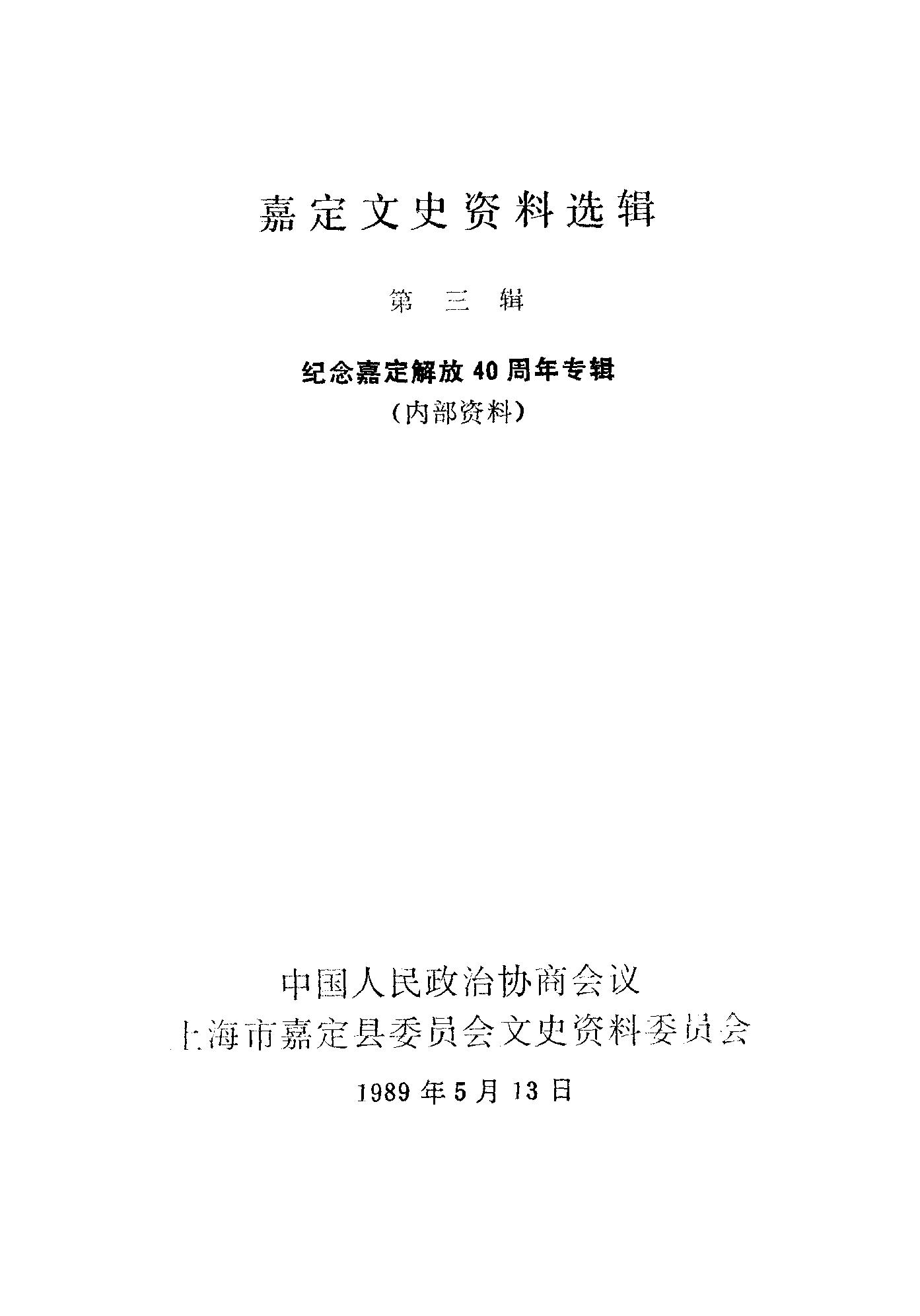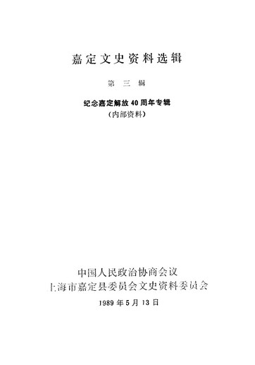 嘉定文史資料選輯第三輯_政協上海市嘉定縣委員會文史資料委員會