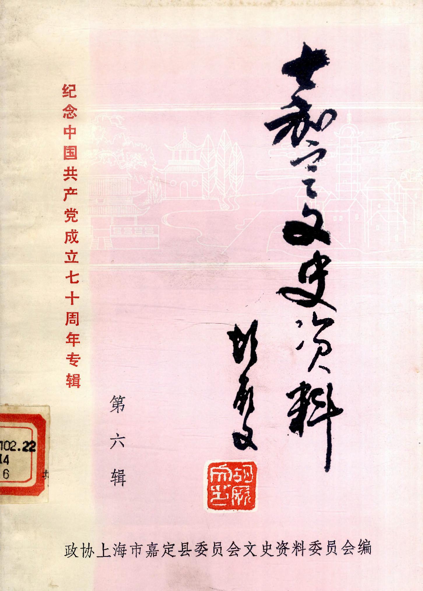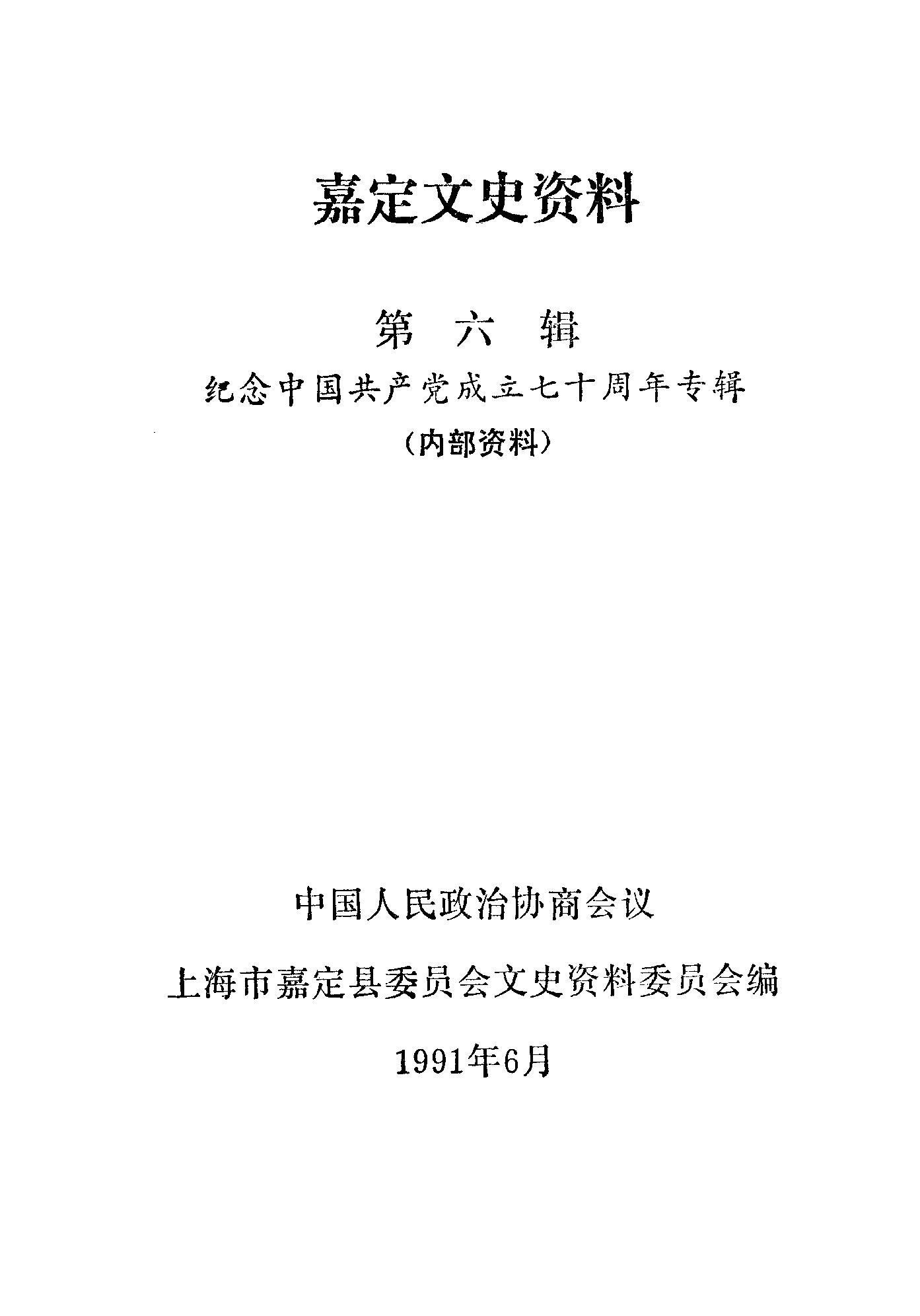 嘉定文史資料第六輯_政協上海市嘉定縣委員會文史資料委員會