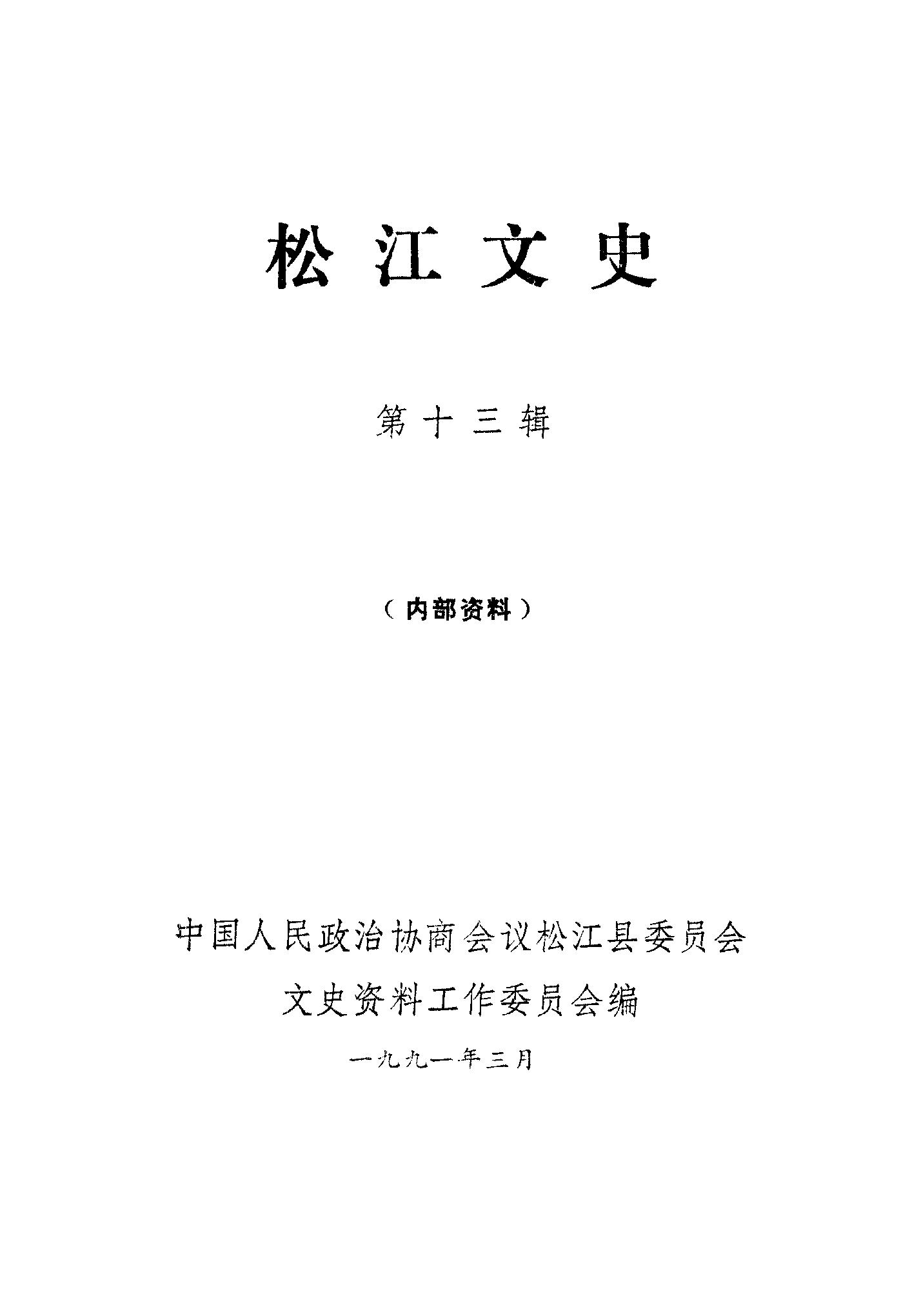 松江文史第十三輯_政協松江縣委員會文史資料工作委員會