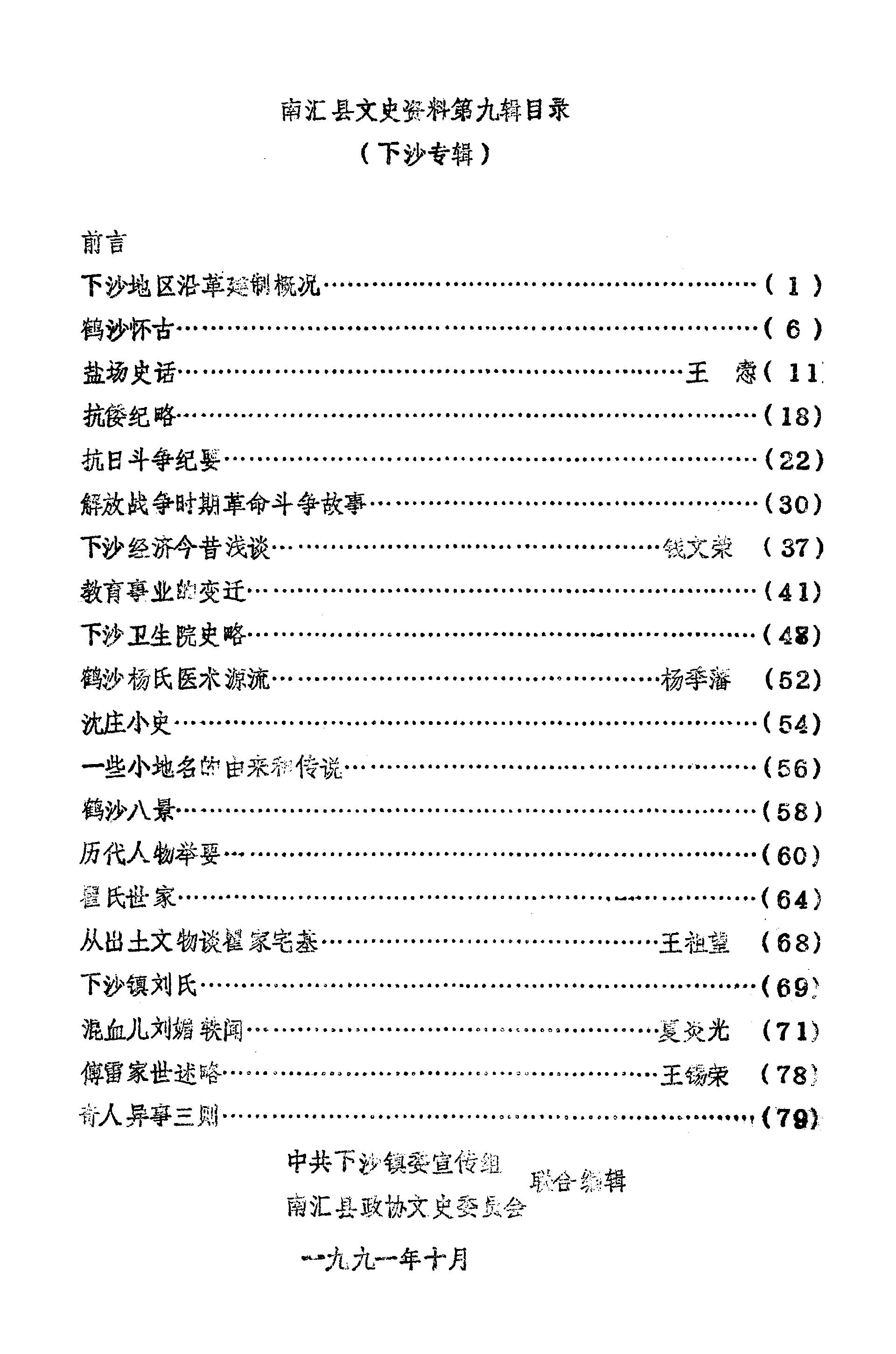 南匯縣文史資料選輯第九輯_中共下沙鎮委宣傳組南匯縣政協文史委員會南匯縣政協文史資料工作委員會