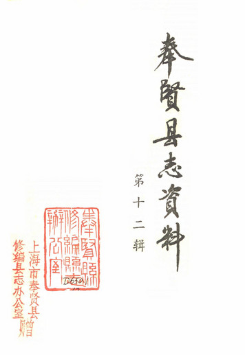 奉賢縣志資料第十二輯_上海市奉賢縣修編縣志辦公室上海市奉賢縣修編縣志辦公室