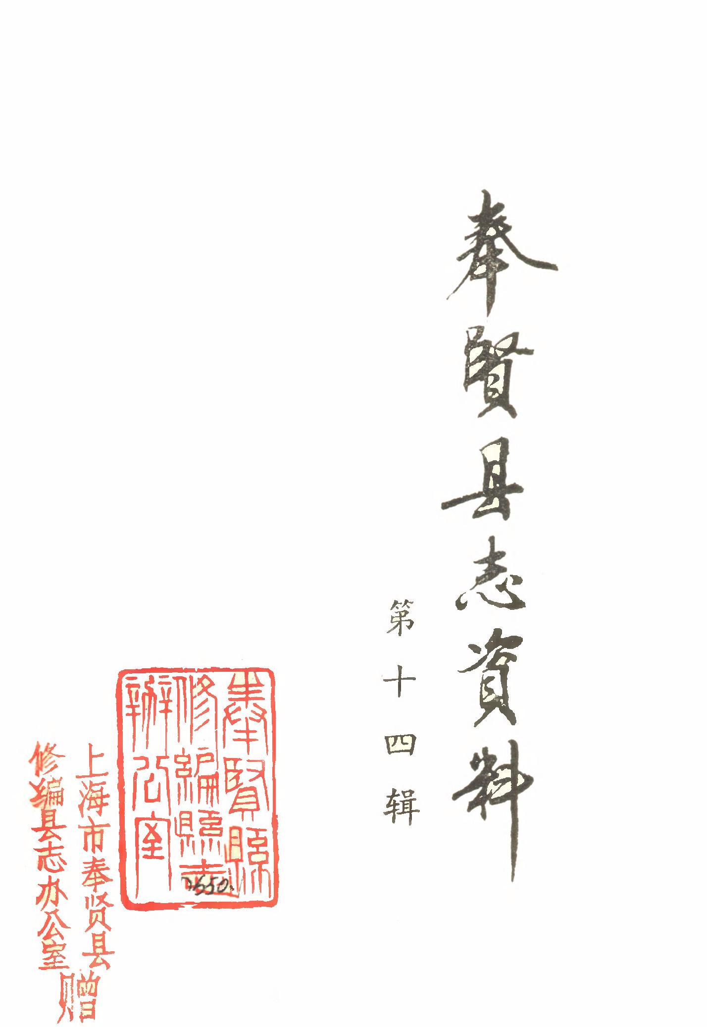 奉賢縣志資料第十四輯_上海市奉賢縣修編縣志辦公室上海市奉賢縣修編縣志辦公室