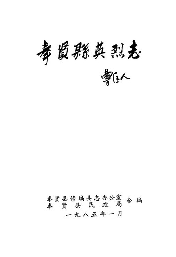 奉賢縣英烈志_奉賢縣修編縣志辦公室奉賢縣民政局奉賢縣修編縣志辦公室