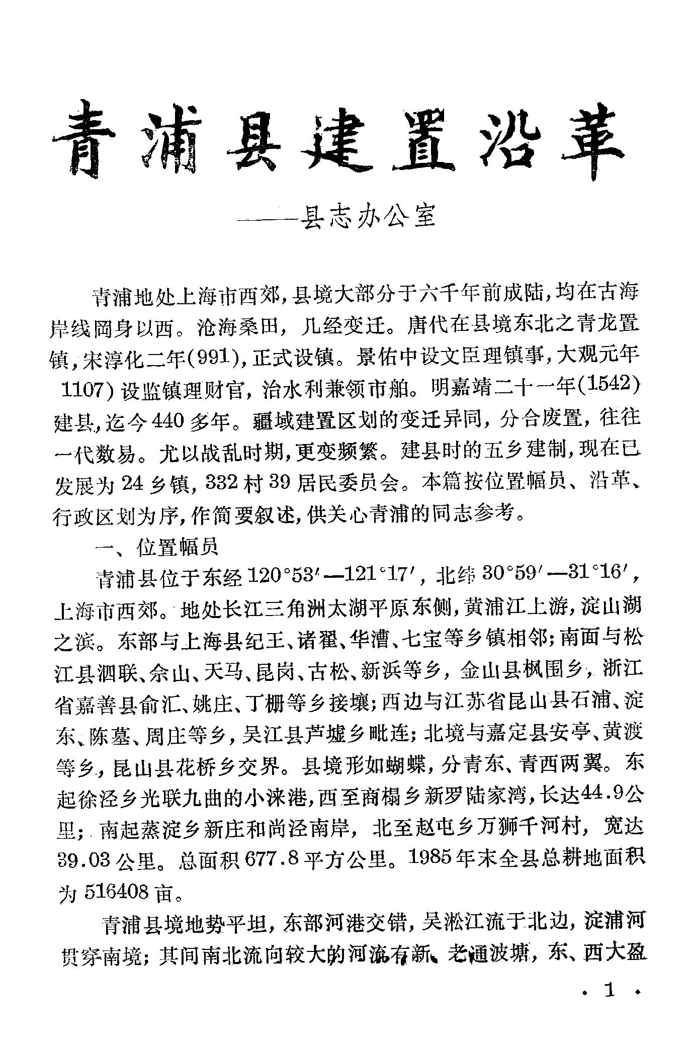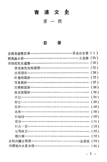 清浦文史第一期_政協青浦縣委員會文史資料研究委員會