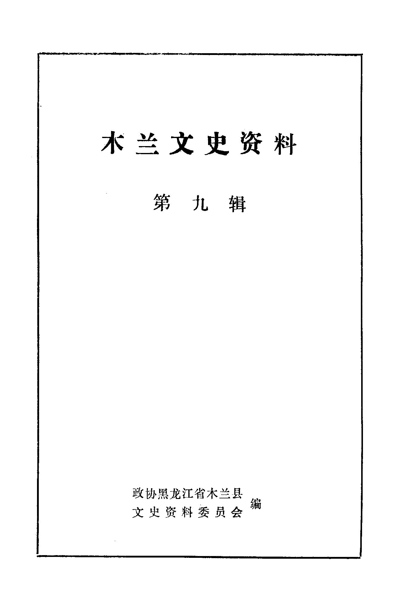 木蘭文史資料第九輯_政協黑龍江省木蘭縣文史資料委員會