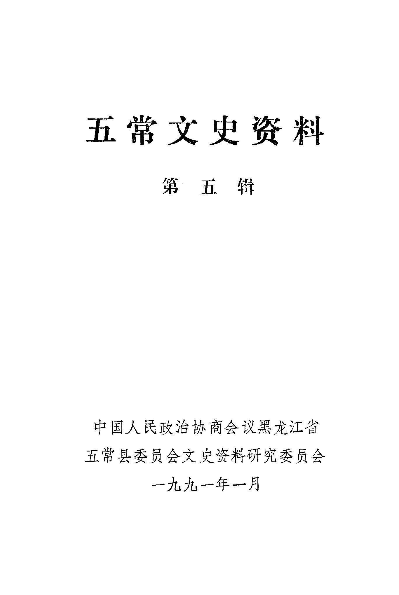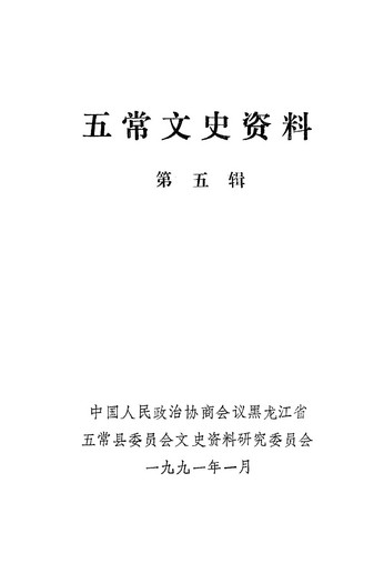 五常文史資料第五輯_政協黑龍江省五常縣委員會文史資料研究委員會