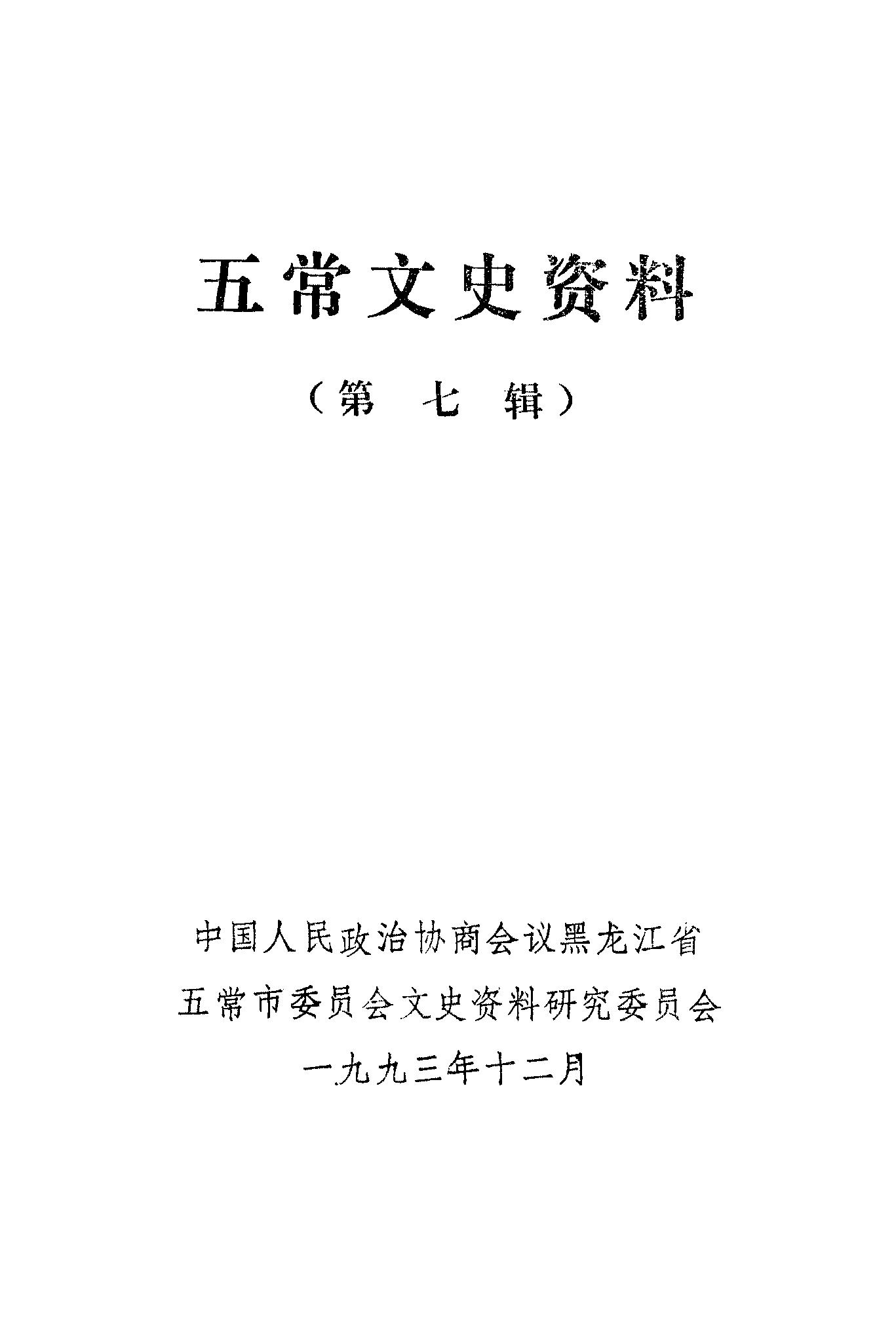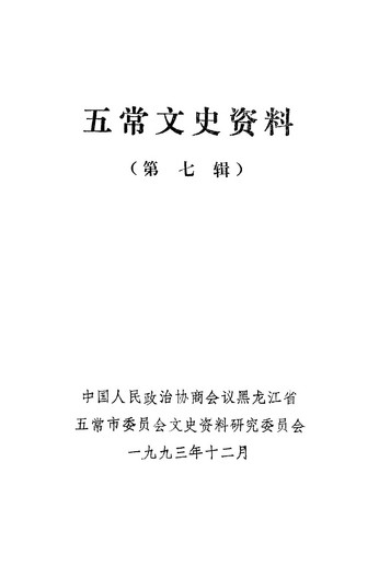 五常文史資料第七輯_政協黑龍江省五常縣委員會文史資料研究委員會